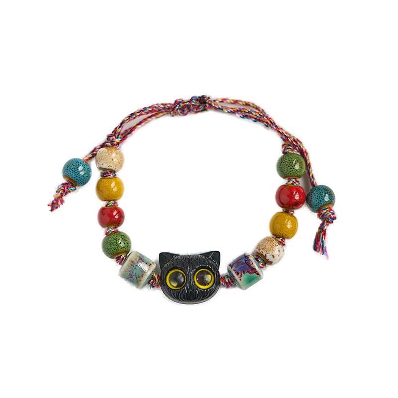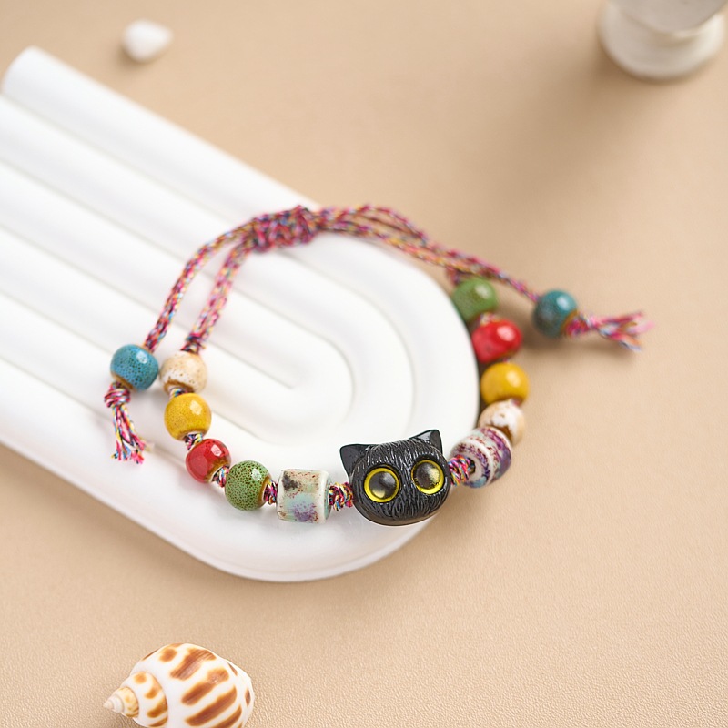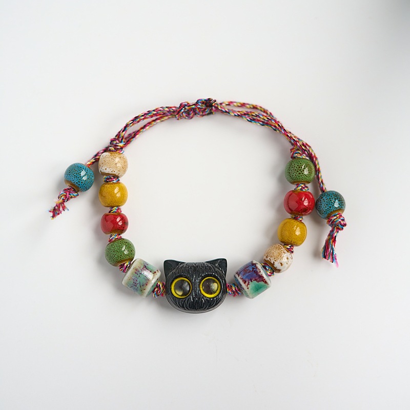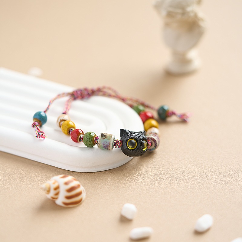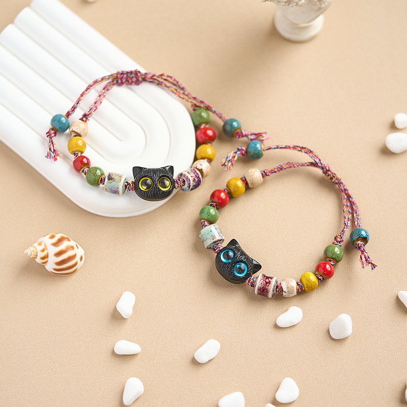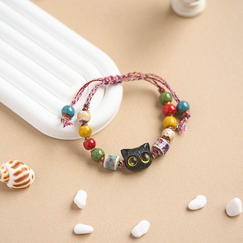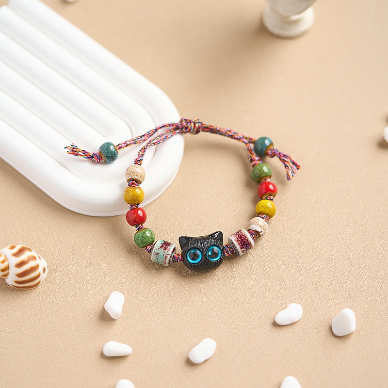 小红书同款夜市摆摊景德镇陶瓷手串手绳串珠猫咪手链女小饰品批发