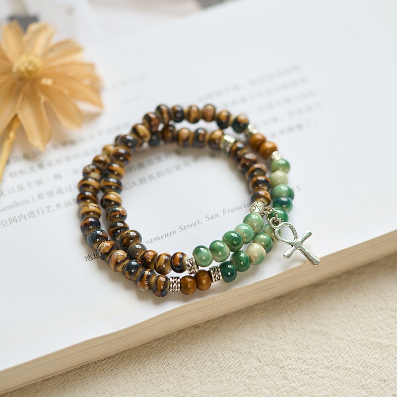 创意双圈陶瓷森系手链女批发民族风文艺小清新学生时尚手串饰品潮