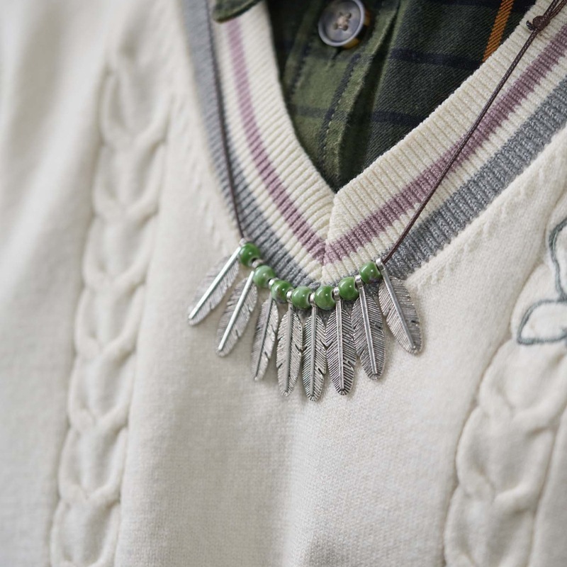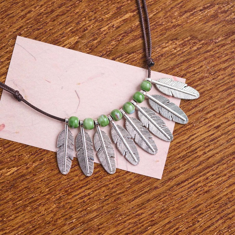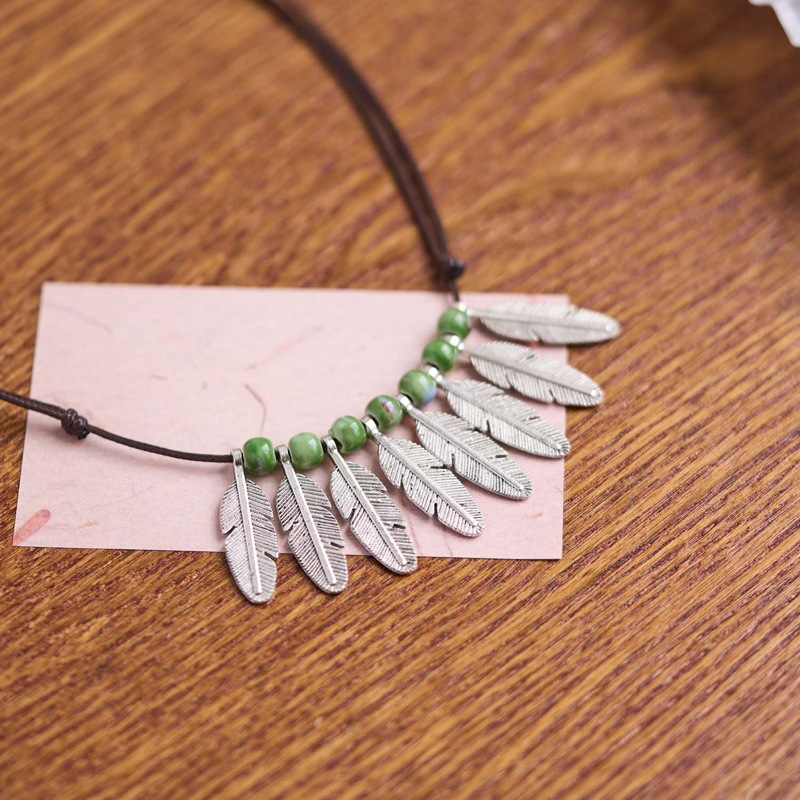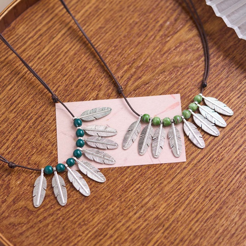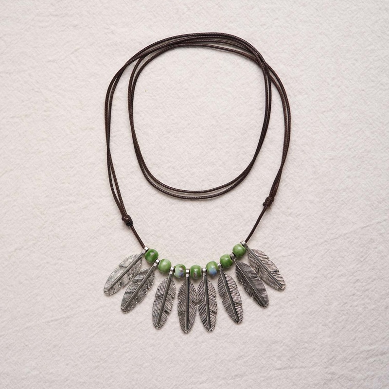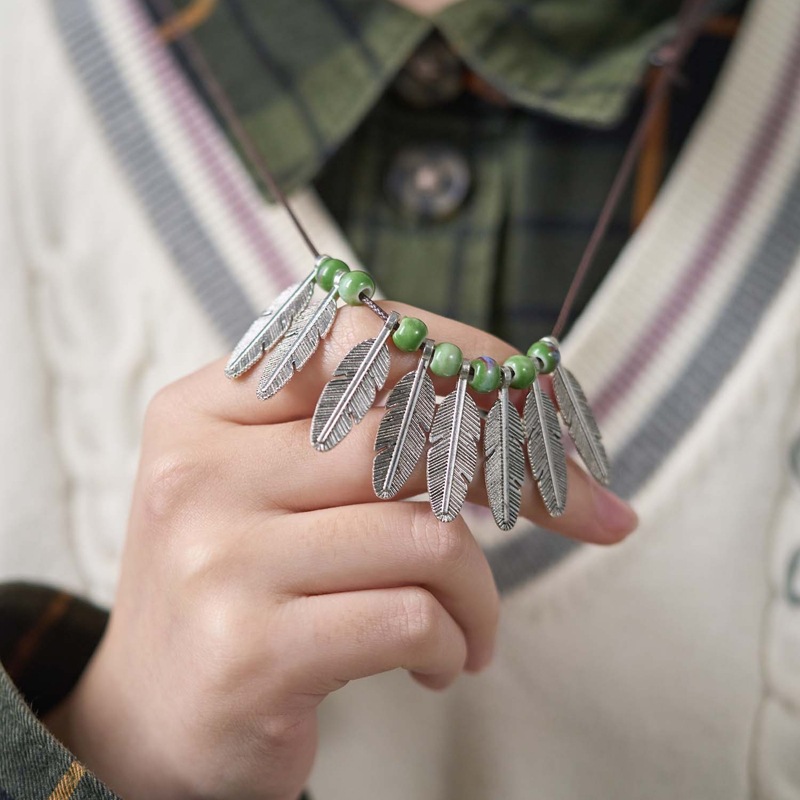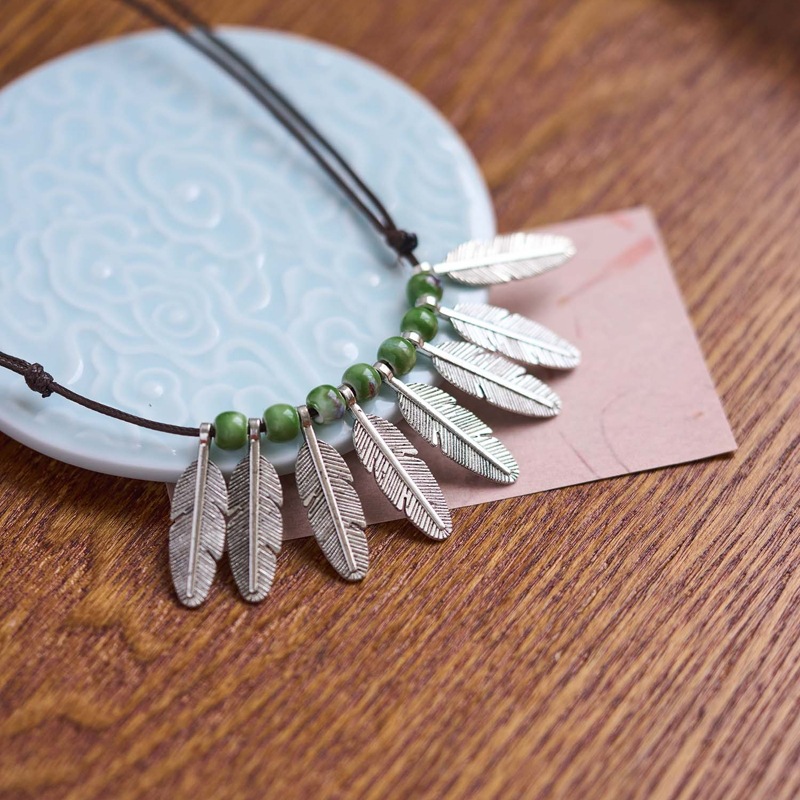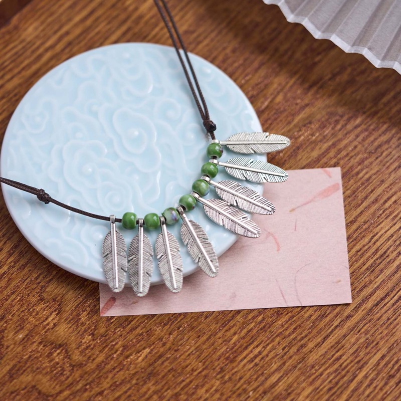 ethnic style jingdezhen ceramic necklace high-grade artistic feather ornaments wholesale national style elements new chinese style necklace
