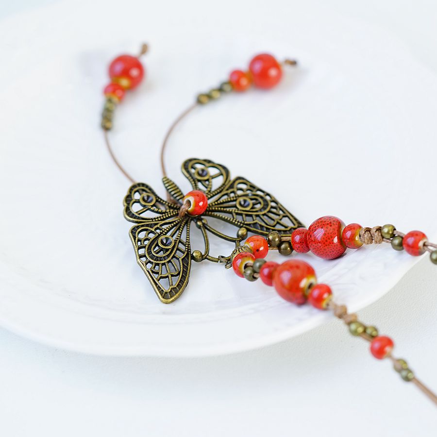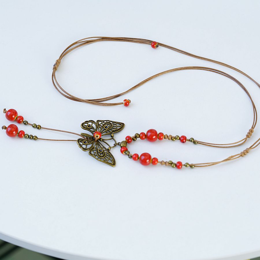 小红书同款民族风蝴蝶长款项链毛衣链古风衣服挂饰中国风项链批发