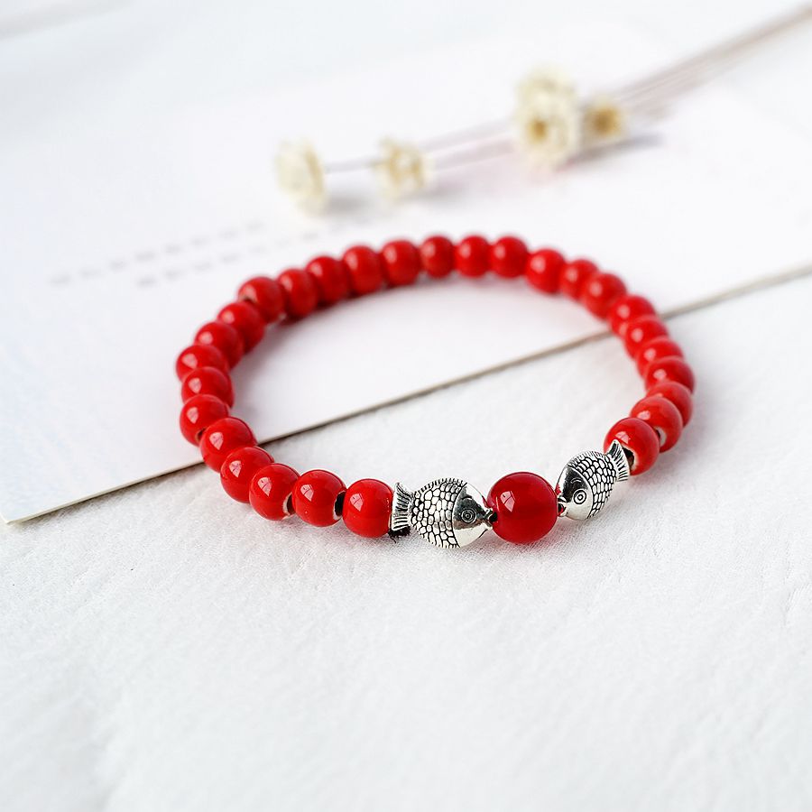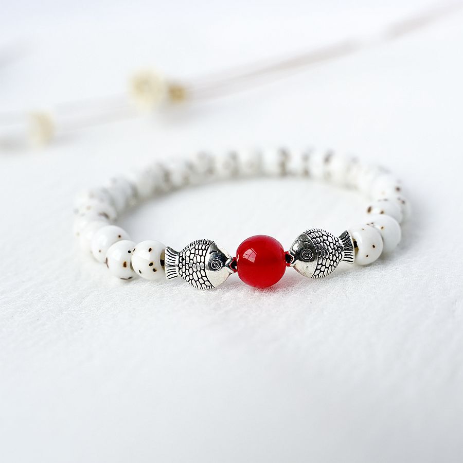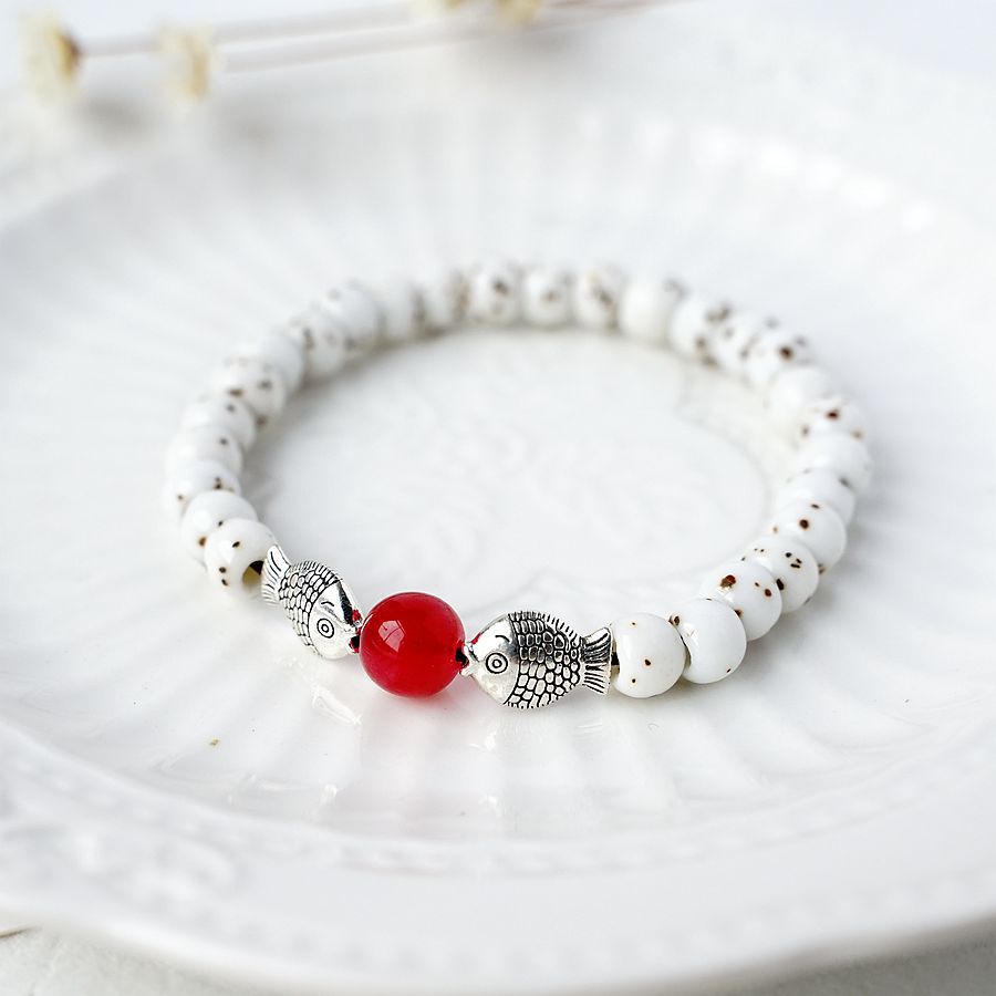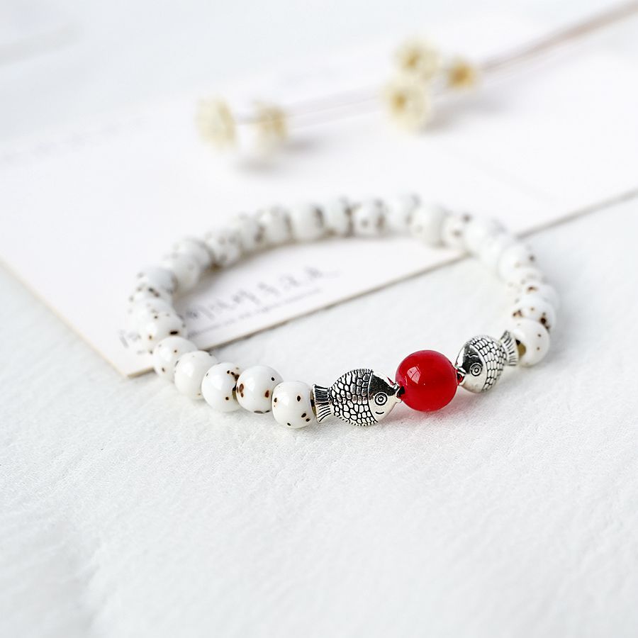 文艺小清新小鱼陶瓷菩提手串民族风情侣学生手链国风素雅民宿手链