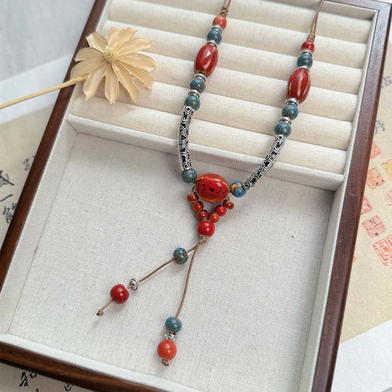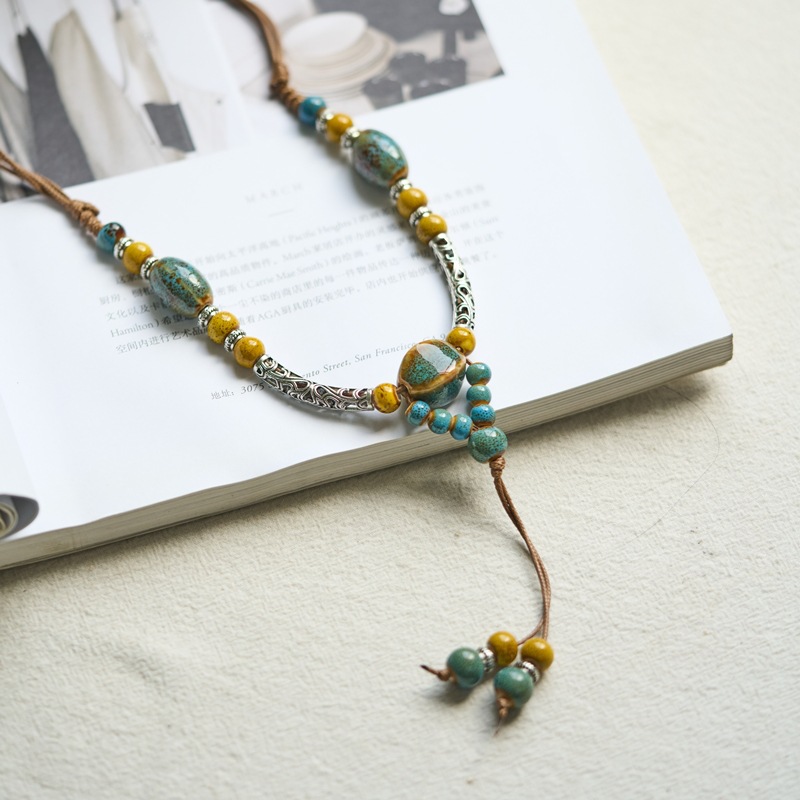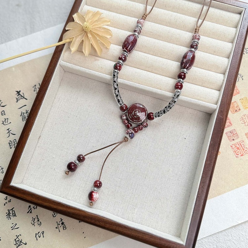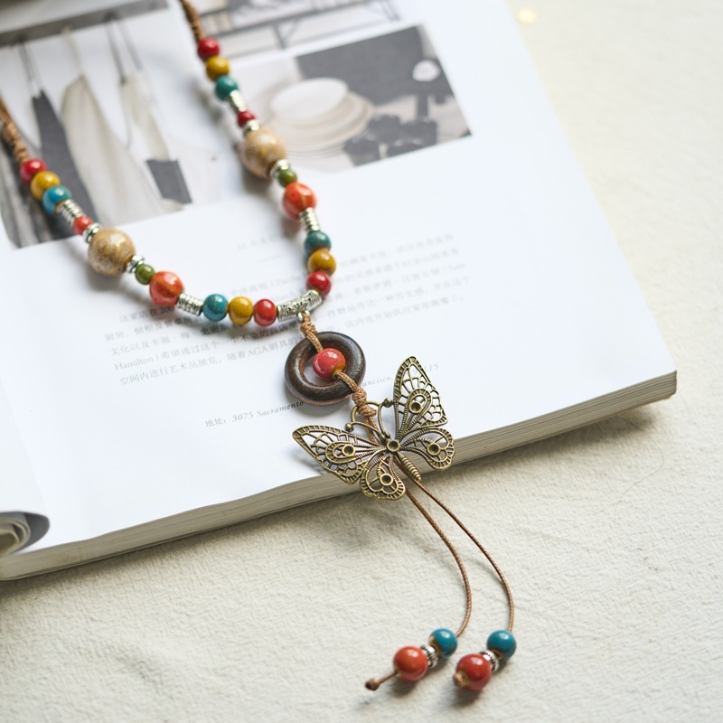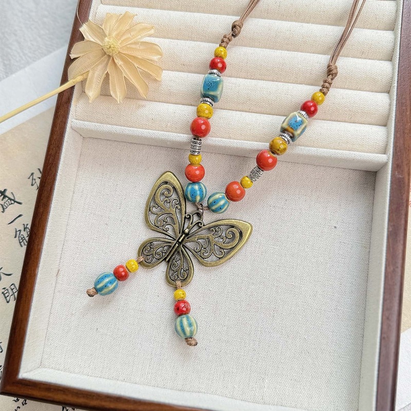文创景德镇陶瓷项链蝴蝶跨境饰品批发国风文艺新中式手工编织项饰