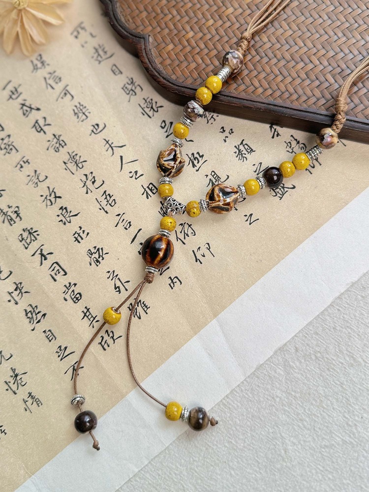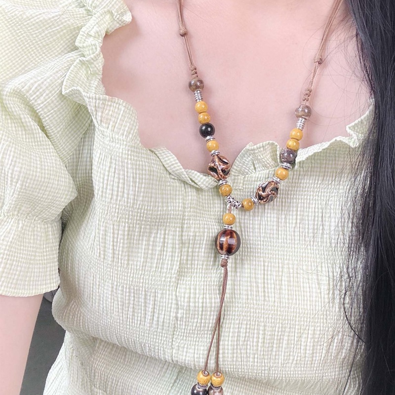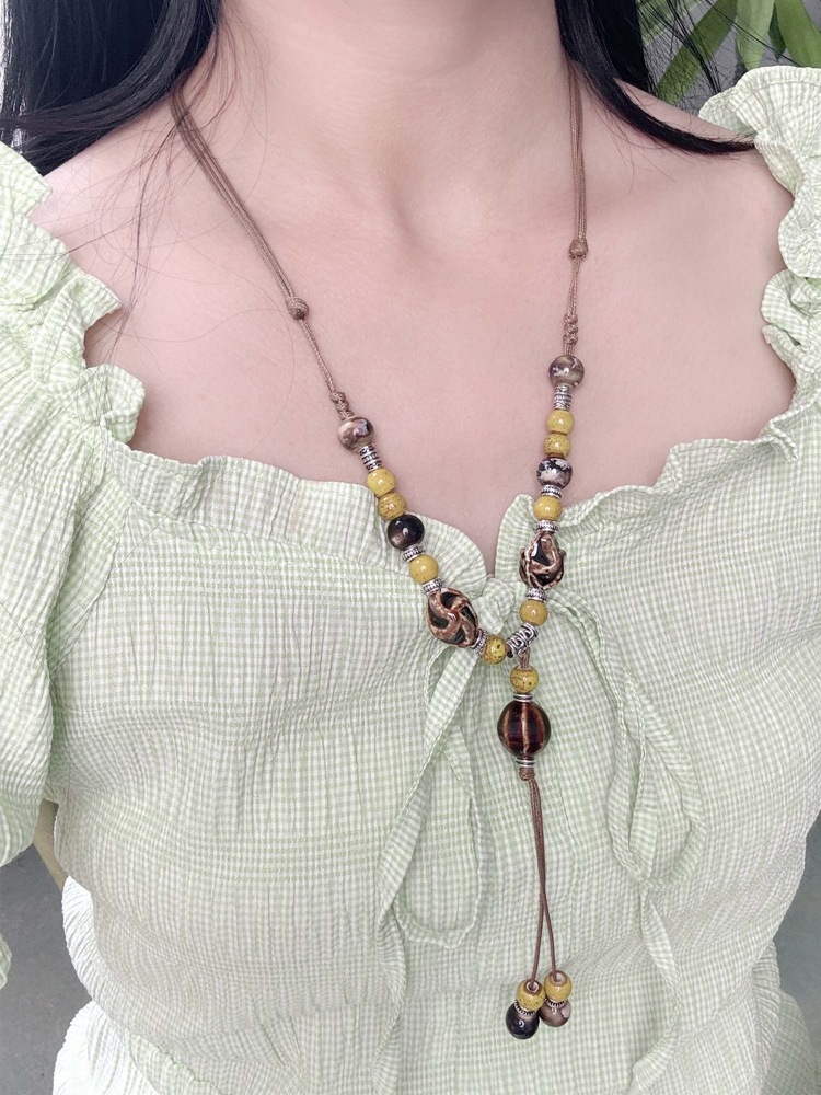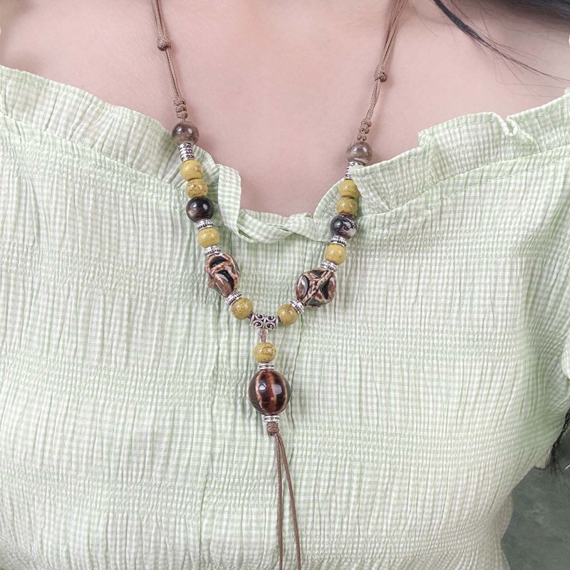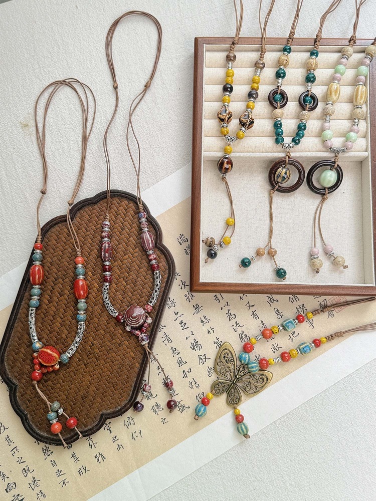 文创景德镇陶瓷项链蝴蝶跨境饰品批发国风文艺新中式手工编织项饰