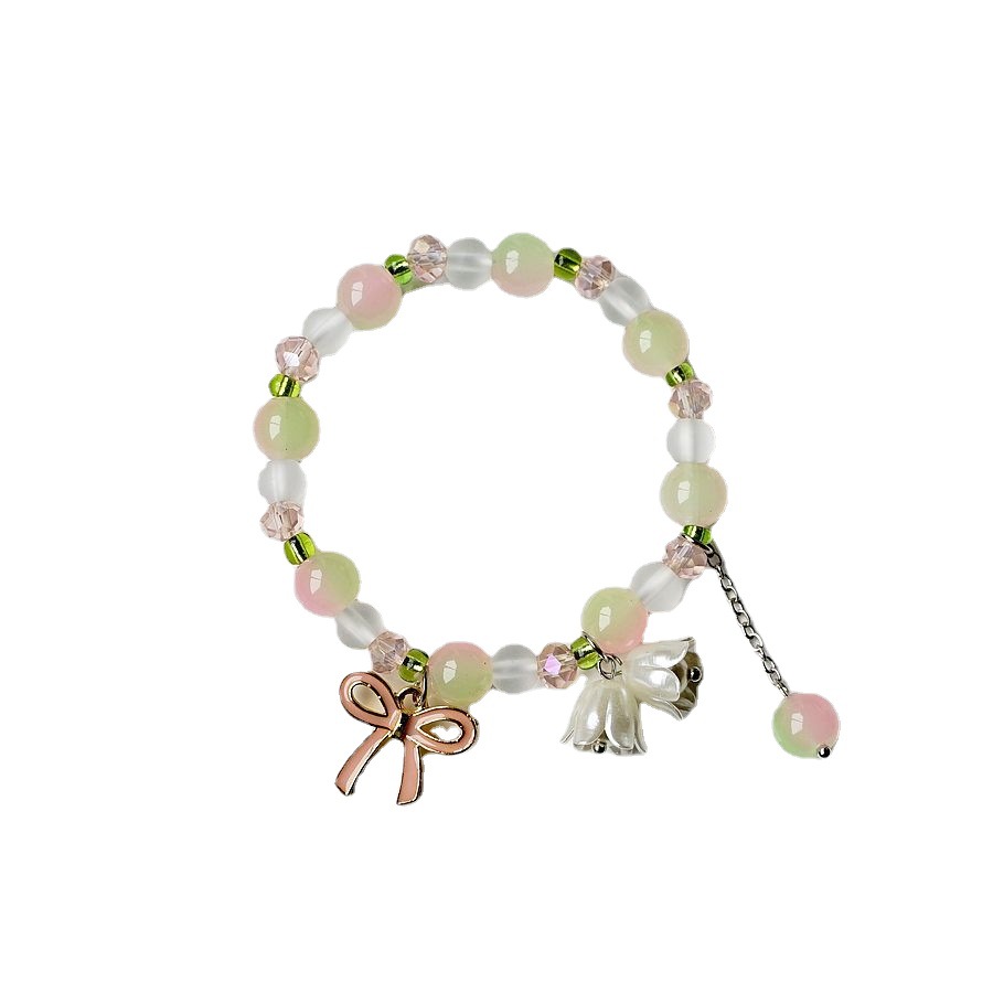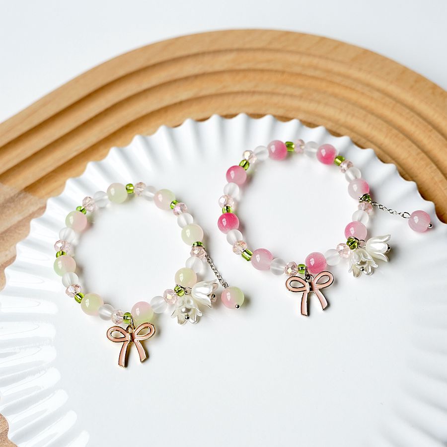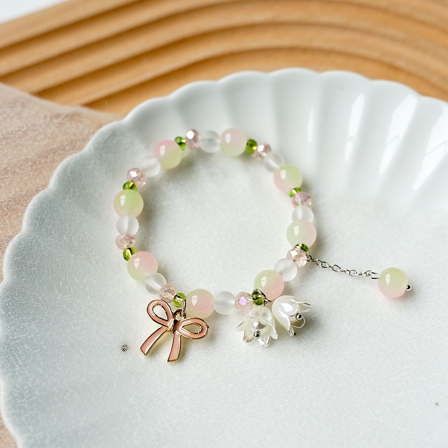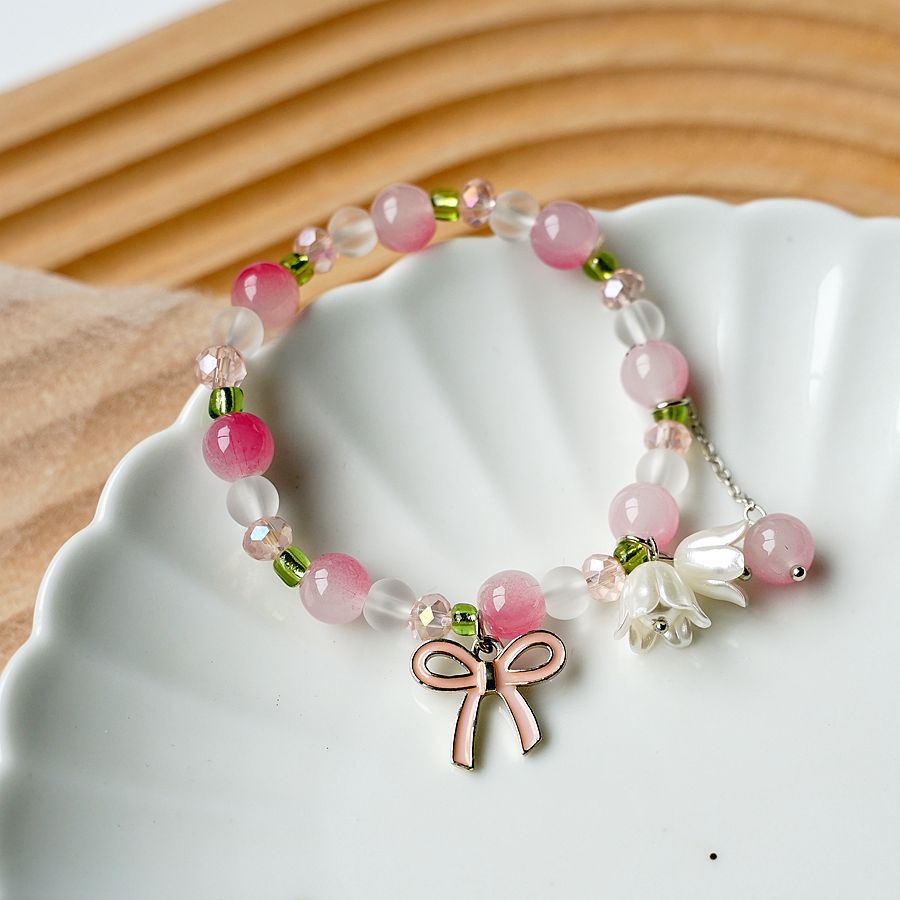 产地货源新款日韩流行珍珠铃兰花手串女简约文艺粉色渐变手链批发