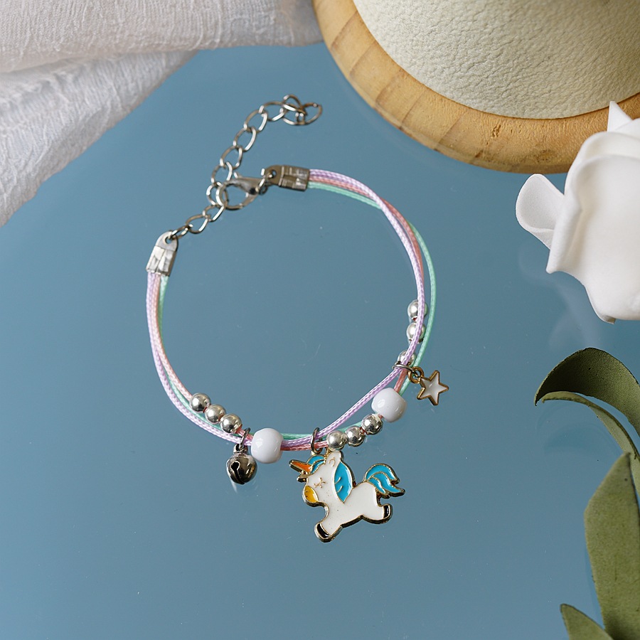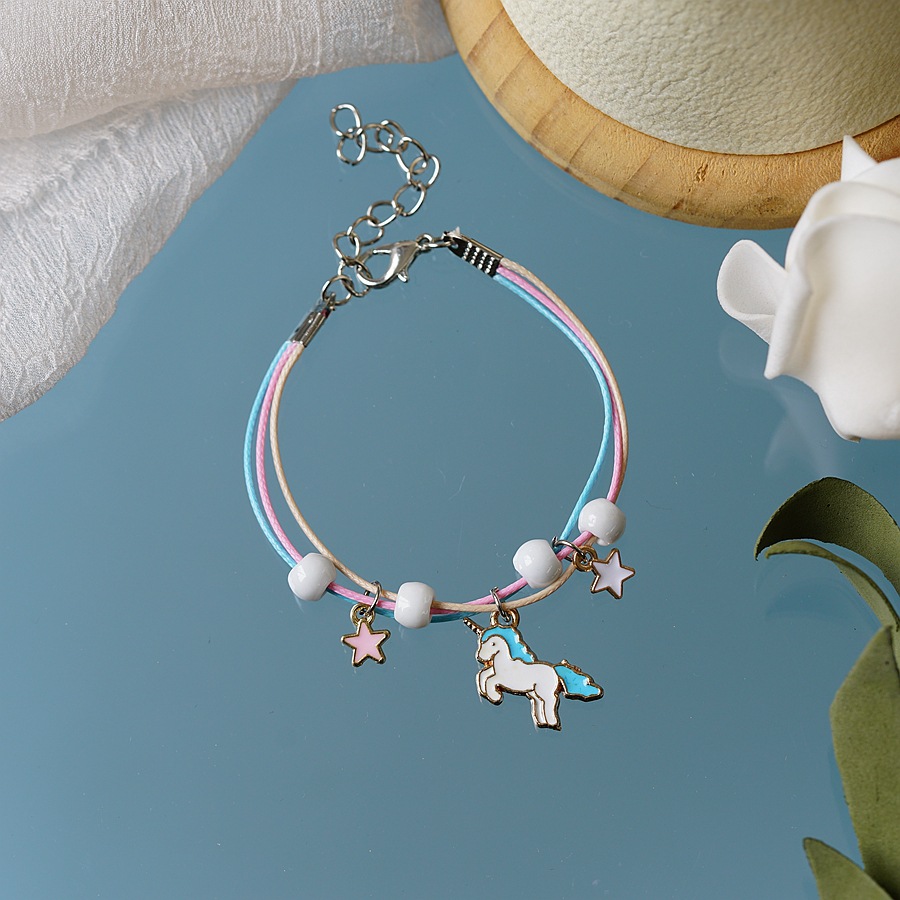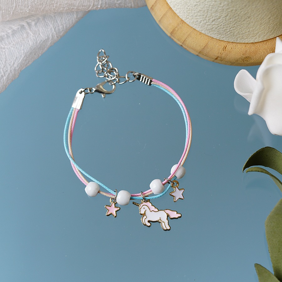 跨境珍珠手链批发简约个性多色手绳独角兽滴油卡通学生手链女手饰