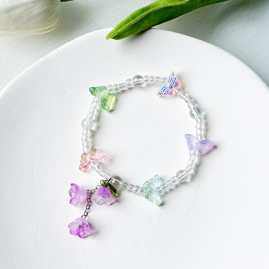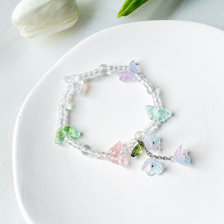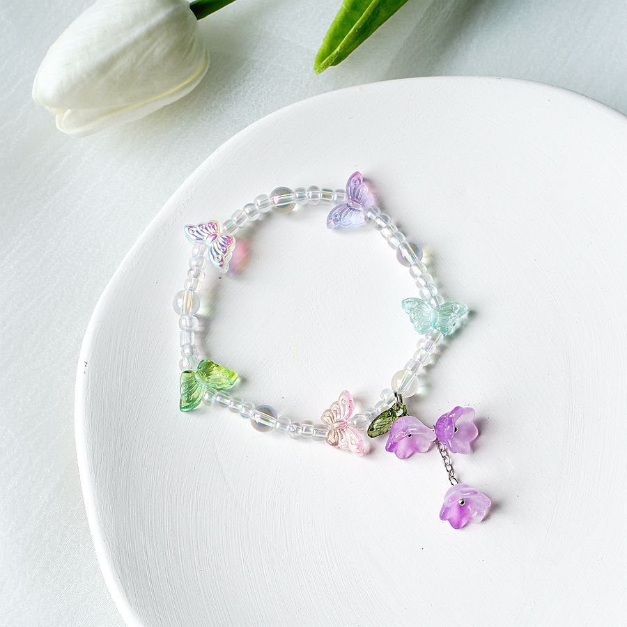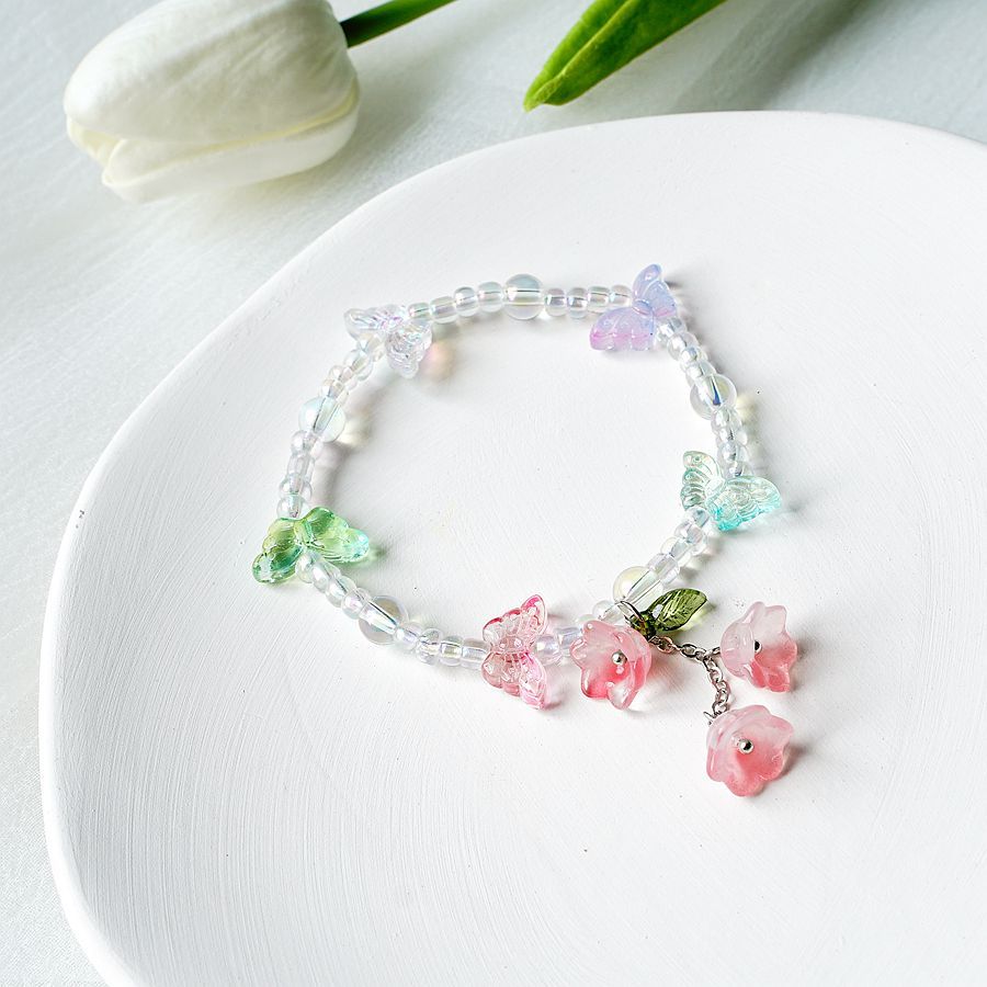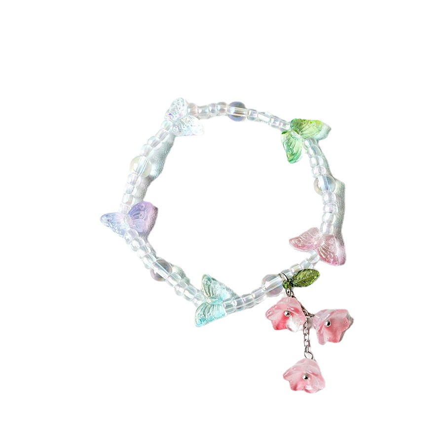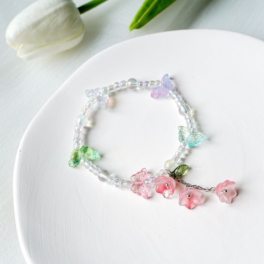 国风上新多色蝴蝶流苏铃兰花串珠手链仙气水晶米珠小众手串女潮