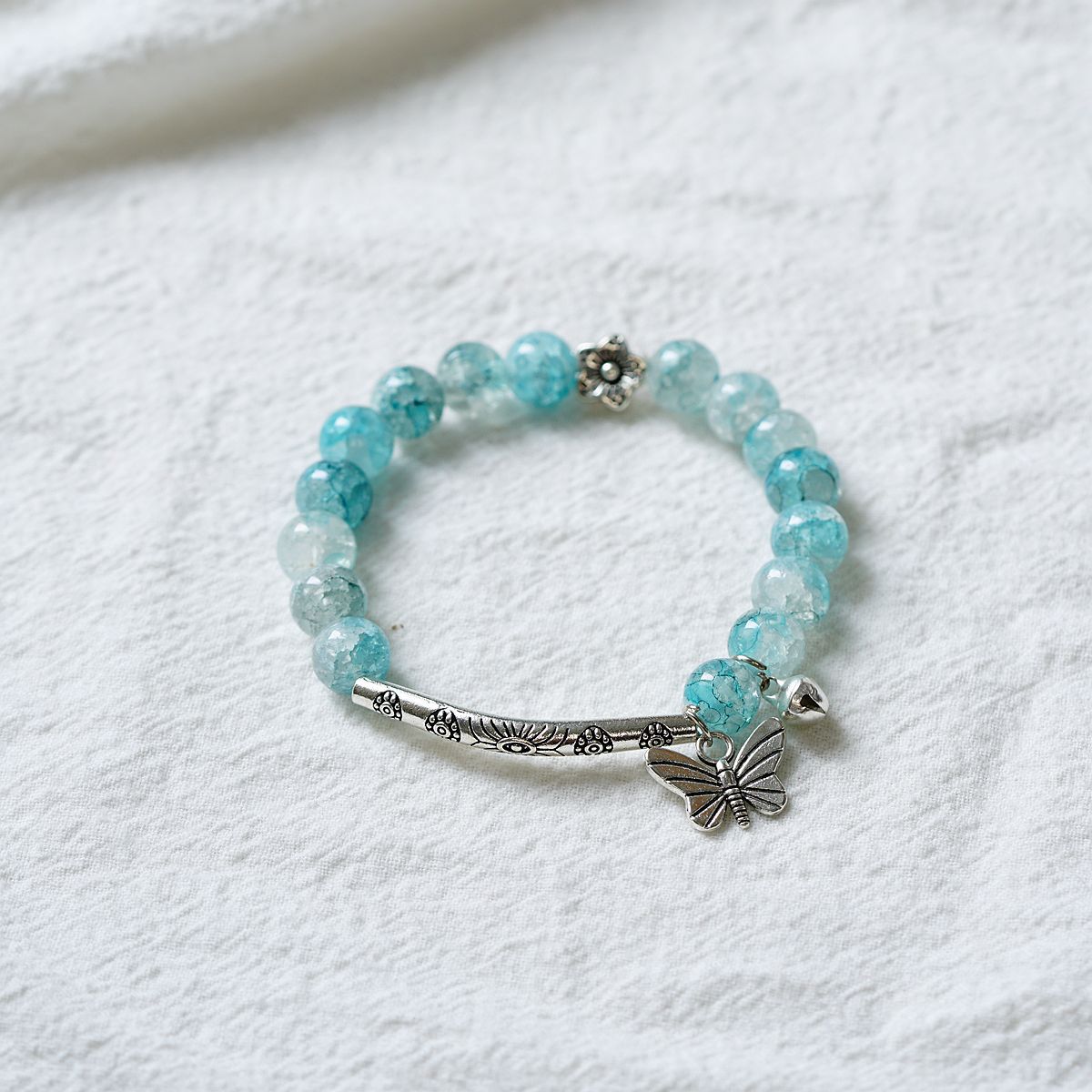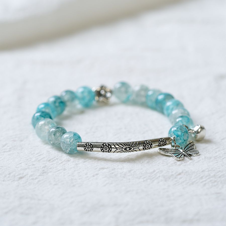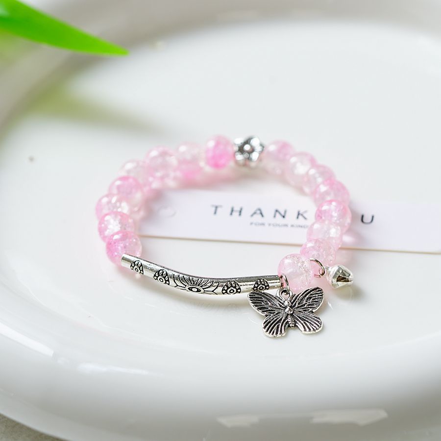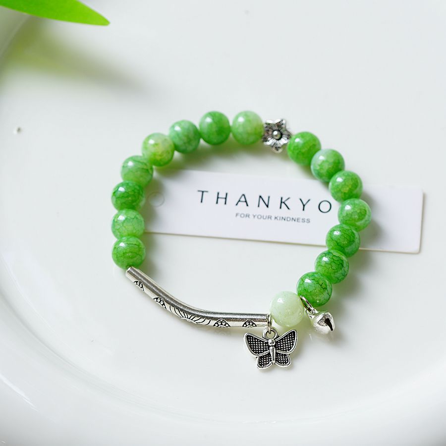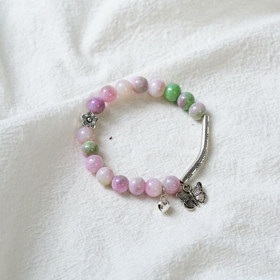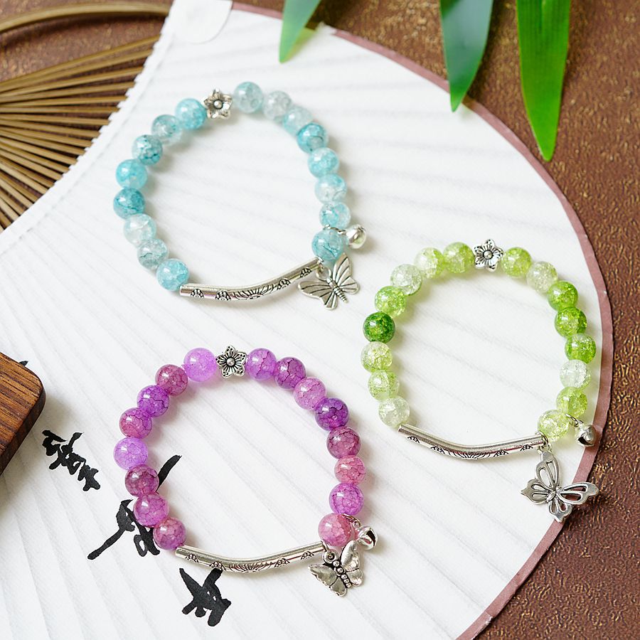 一米瓷手饰冰裂珠琉璃水晶手串女文艺手链新中式地摊流行蝴蝶配饰