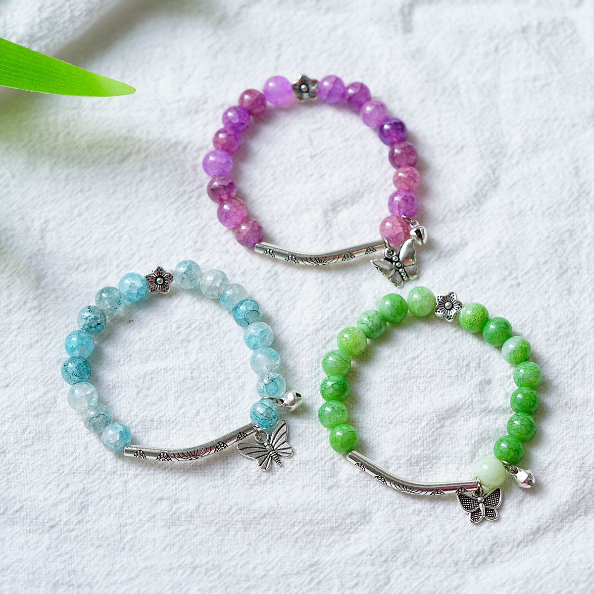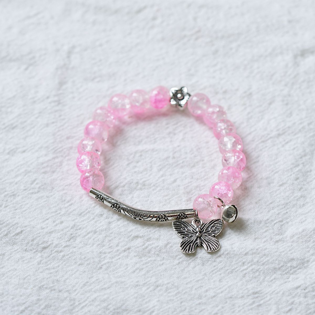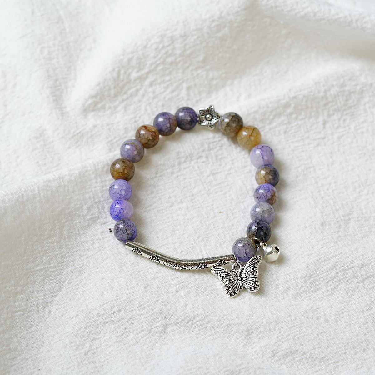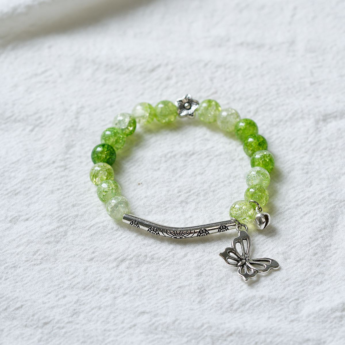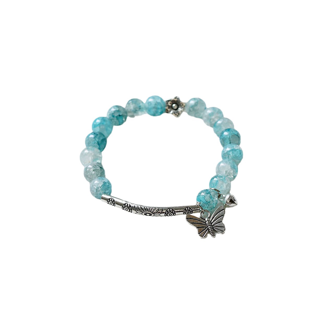 一米瓷手饰冰裂珠琉璃水晶手串女文艺手链新中式地摊流行蝴蝶配饰