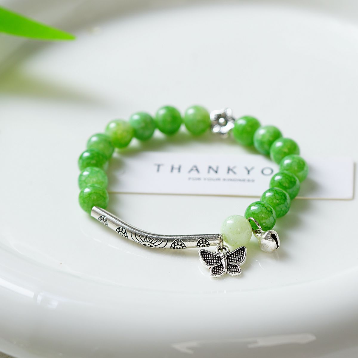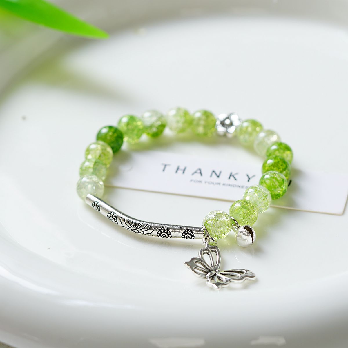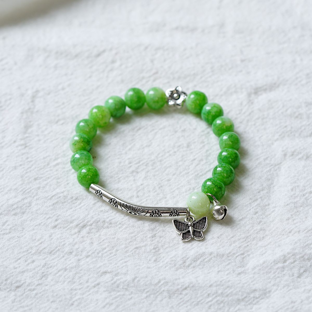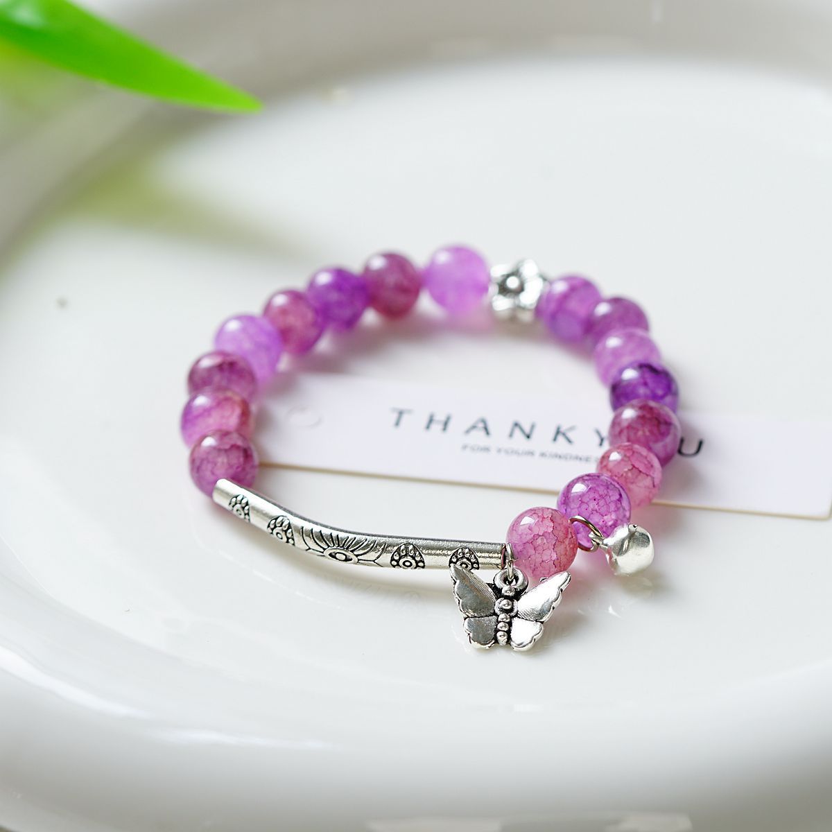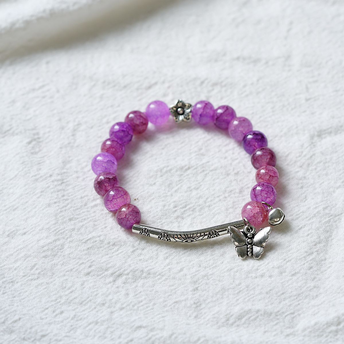 一米瓷手饰冰裂珠琉璃水晶手串女文艺手链新中式地摊流行蝴蝶配饰