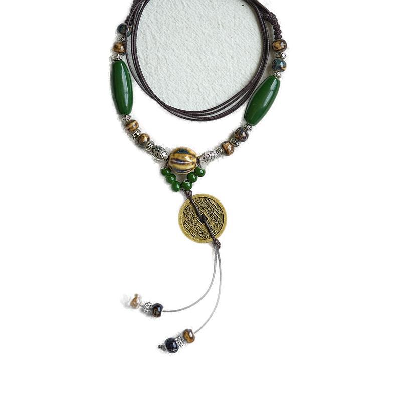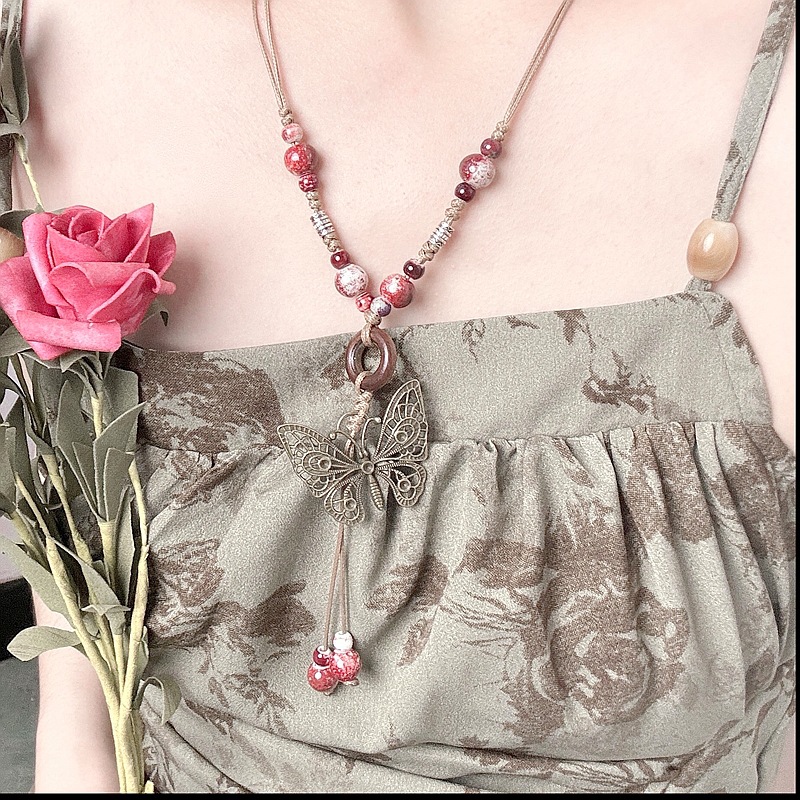 文创景德镇陶瓷项链蝴蝶文艺饰品批发国风文艺新中式编织项饰批发