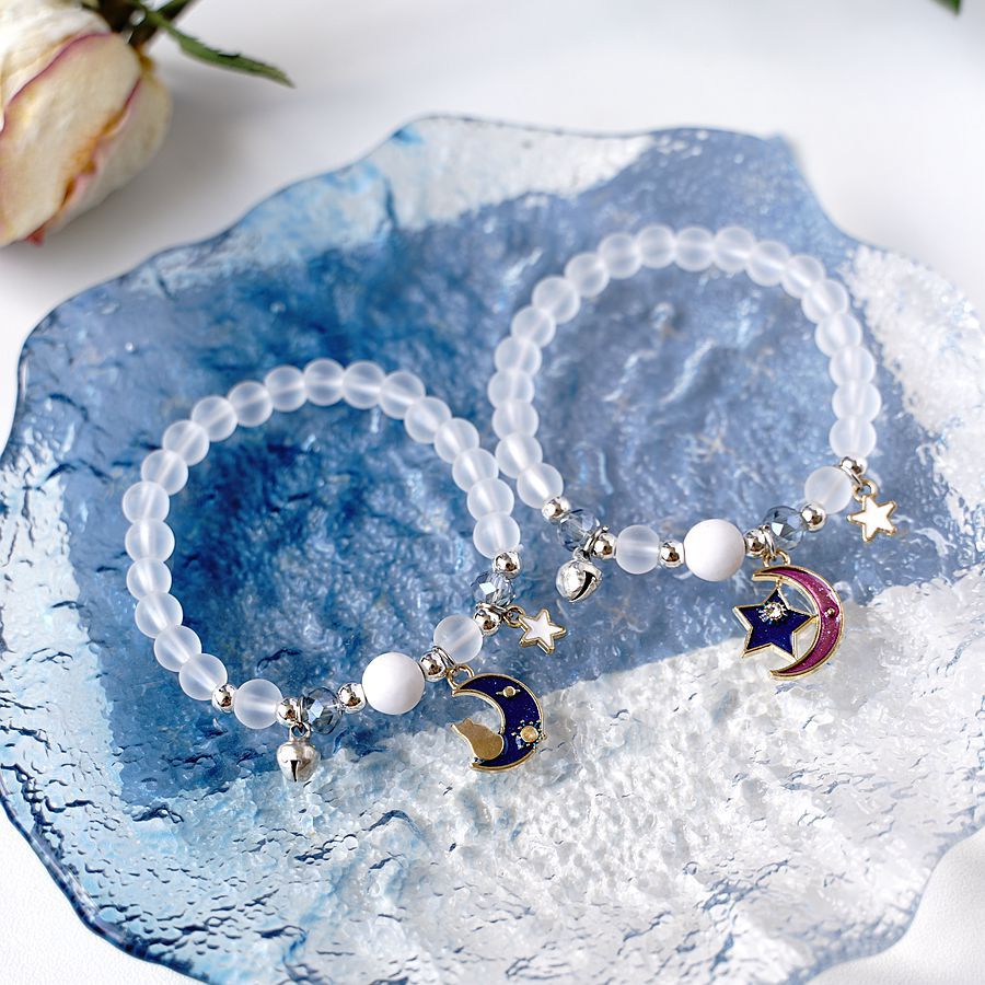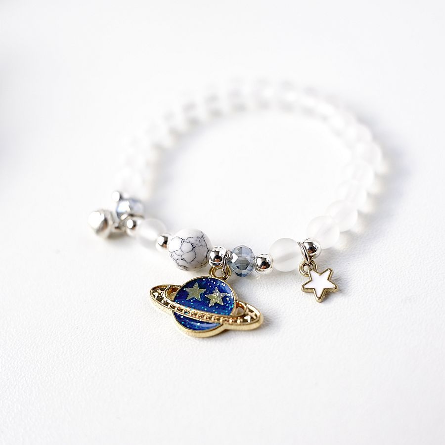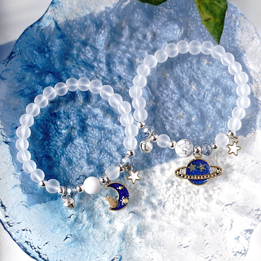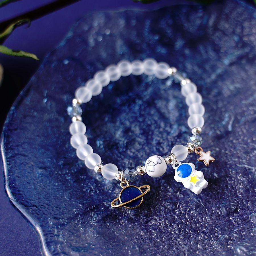 日韩时尚设计感宇航员摘星星送你水晶手串一对 小众设计星空手链