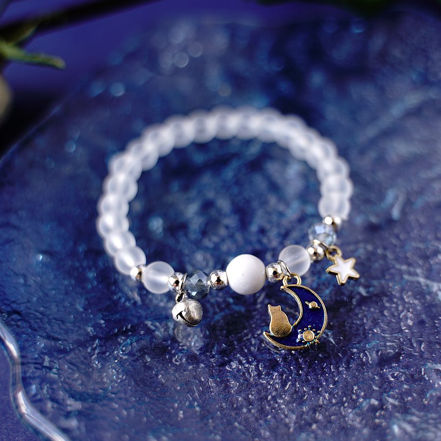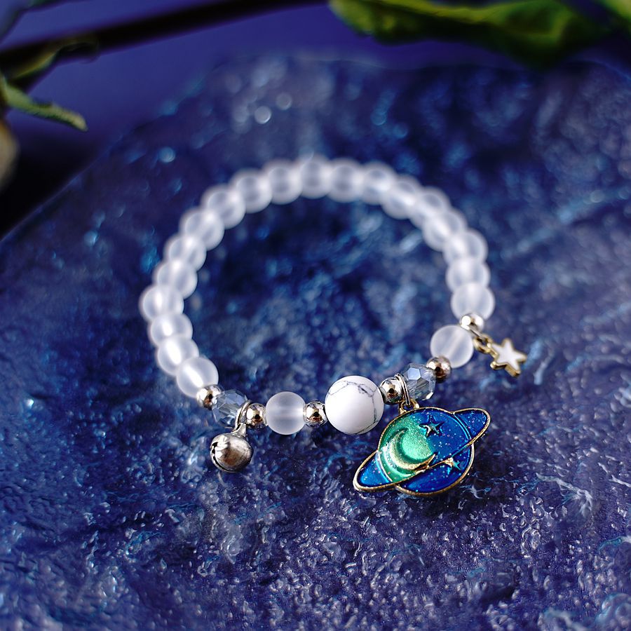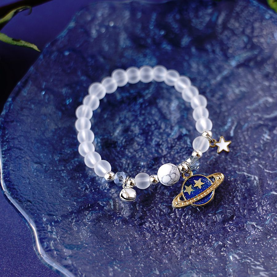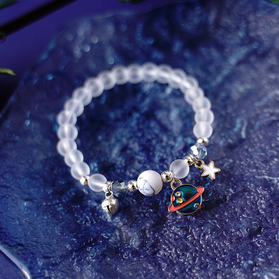 日韩时尚设计感宇航员摘星星送你水晶手串一对 小众设计星空手链