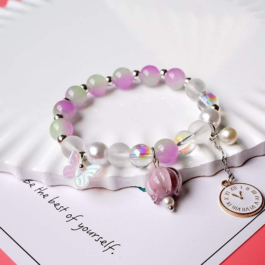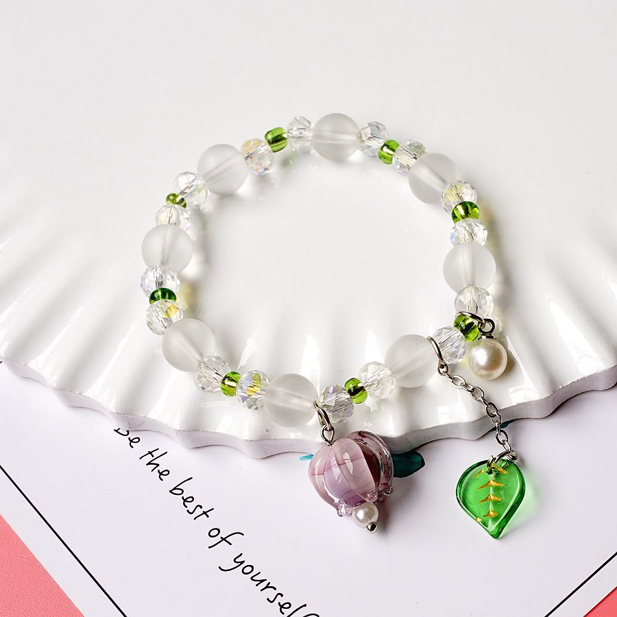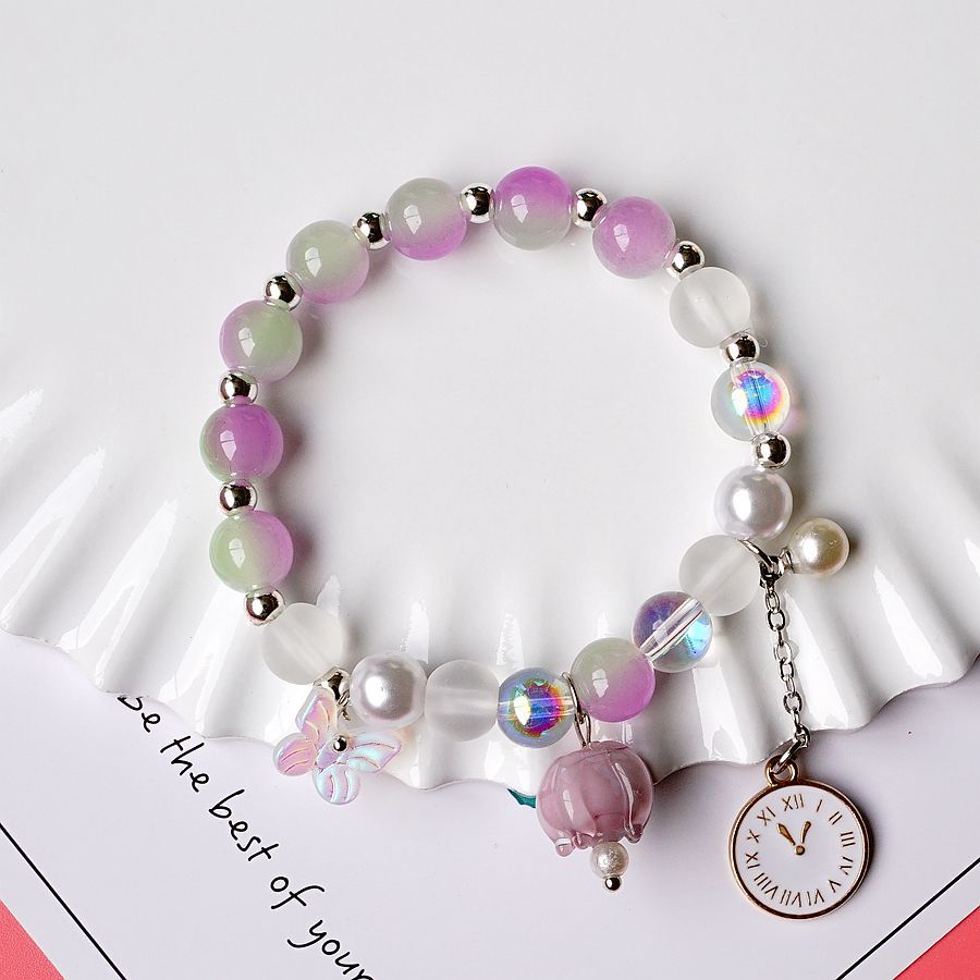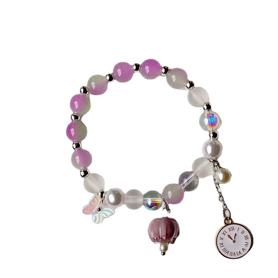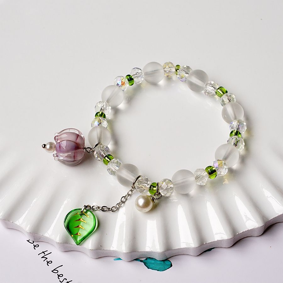 产地货源轻奢日韩流行珍珠水晶手串女简约文艺紫色铃兰花手链批发