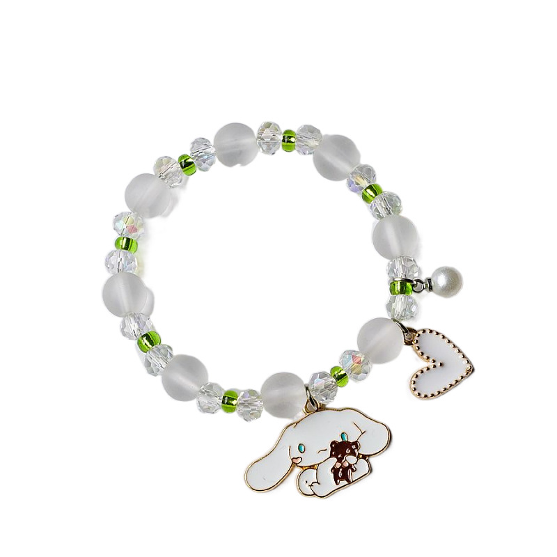 新款韩版小清新可爱玉桂狗水晶串珠手链女 简约森系粉色闺蜜手串