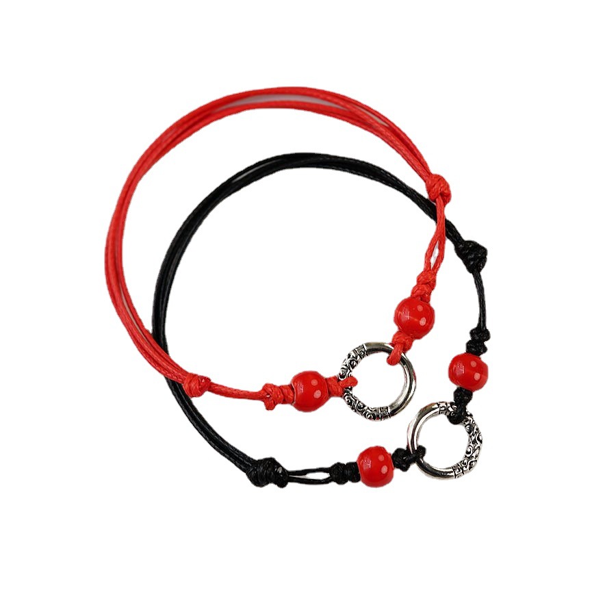 古银色平安扣手绳一对原创设计小众男女情侣手饰复古编织手链配饰