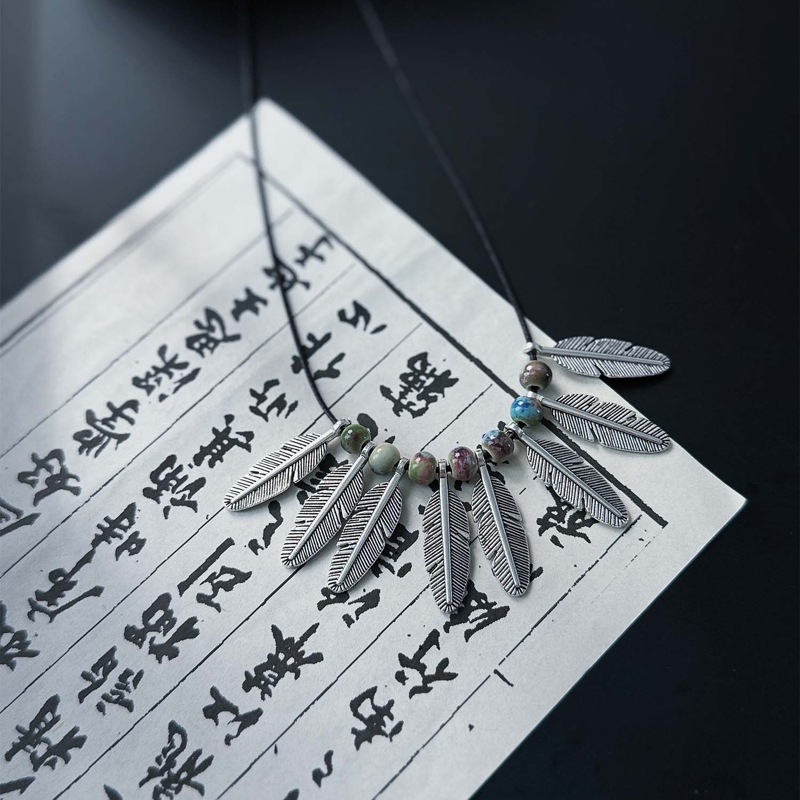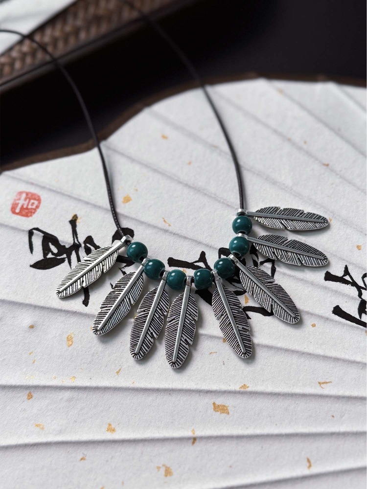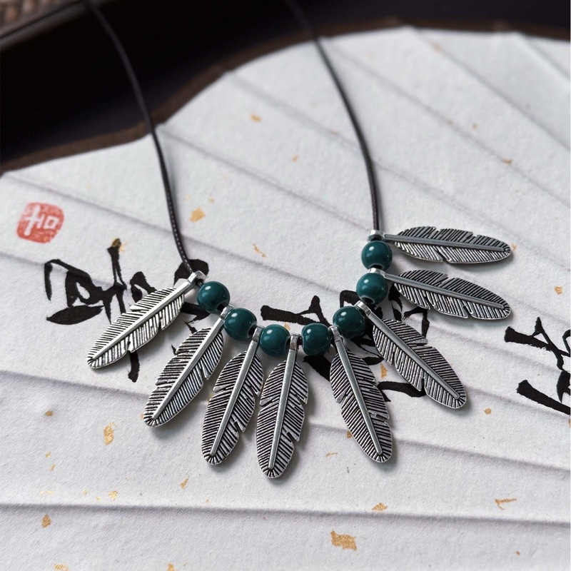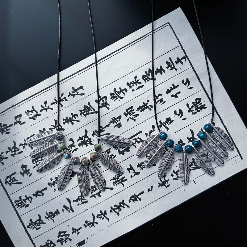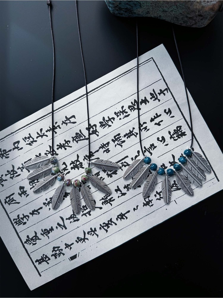 民族风景德镇陶瓷项链女高级感文艺羽毛饰品批发国风元素中式配饰