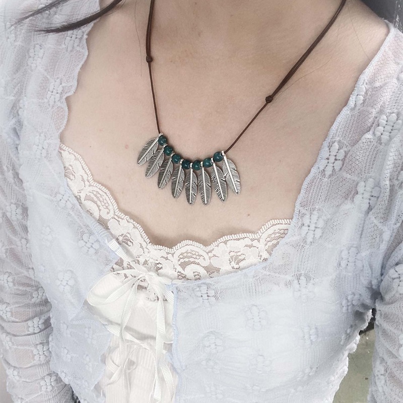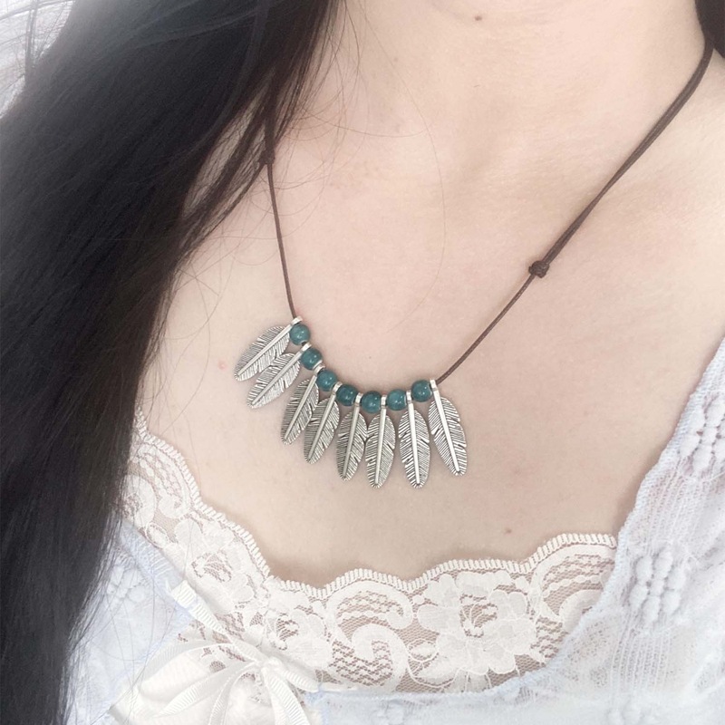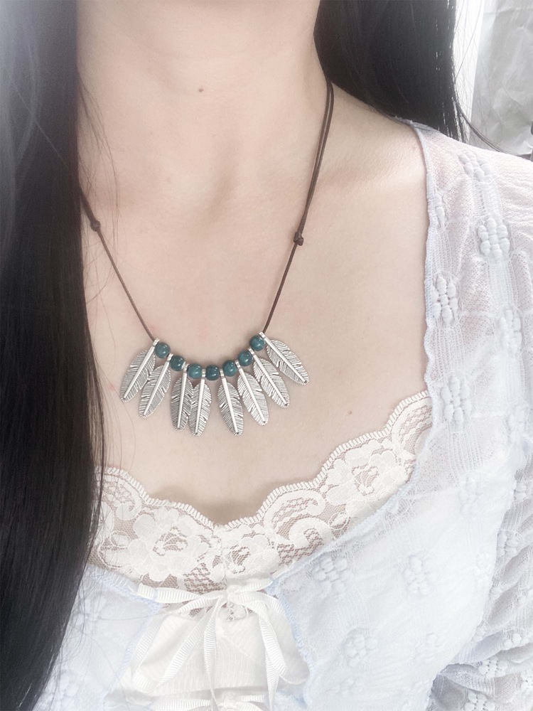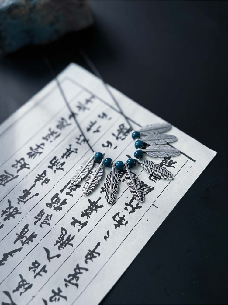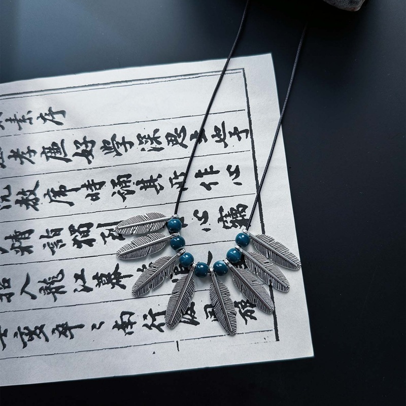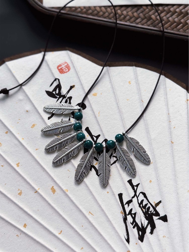 民族风景德镇陶瓷项链女高级感文艺羽毛饰品批发国风元素中式配饰