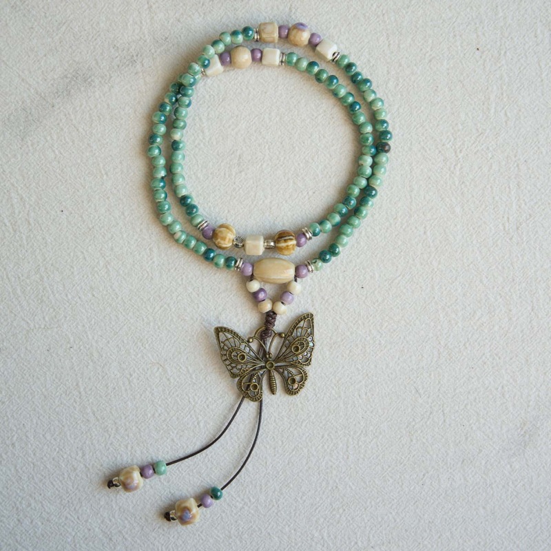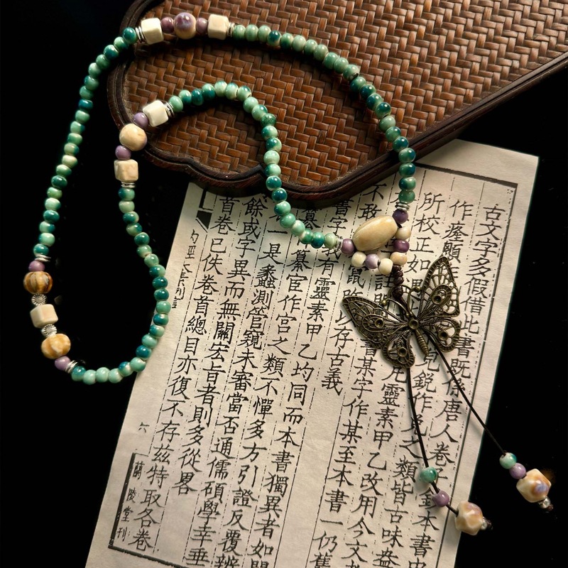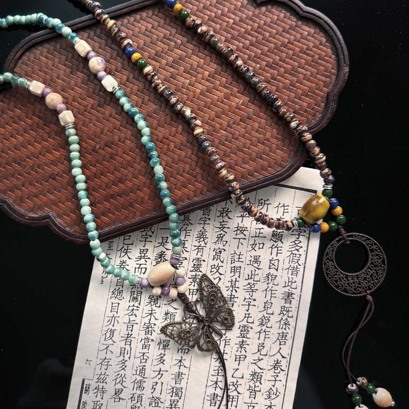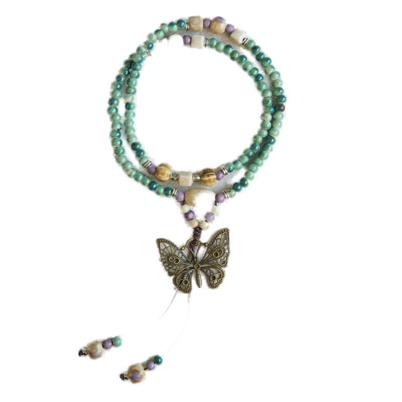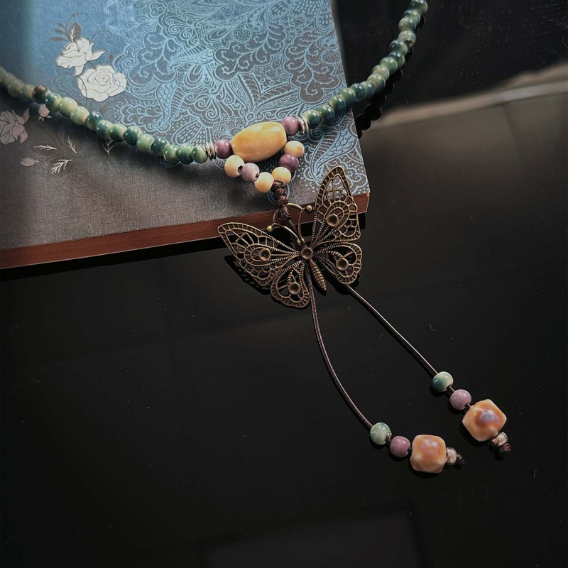 文创蝴蝶景德镇陶瓷项链文艺蝴蝶饰品配饰国风文艺新中式项饰批发