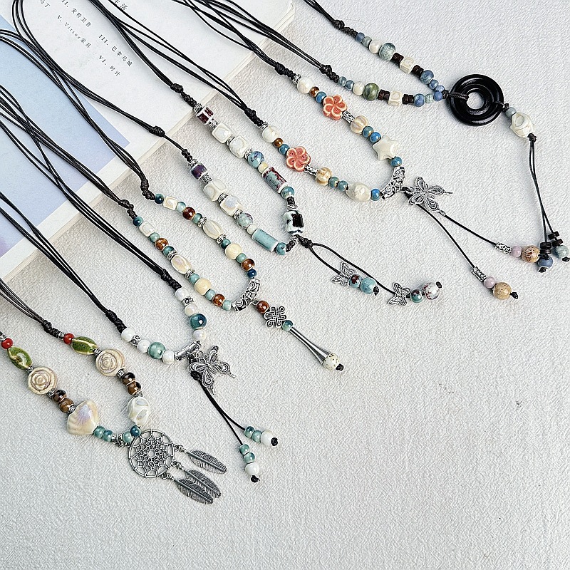 文创元素景德镇陶瓷项链文艺蝴蝶饰品批发国风文艺新中式配饰项饰