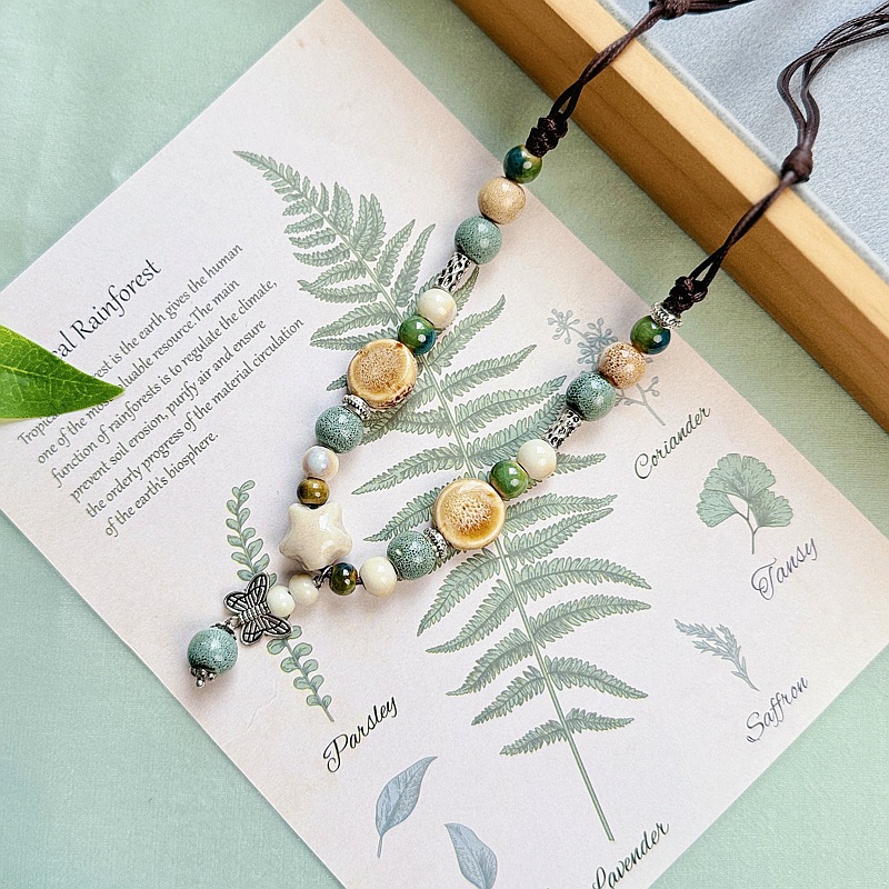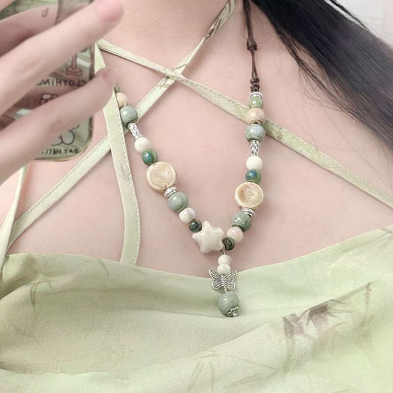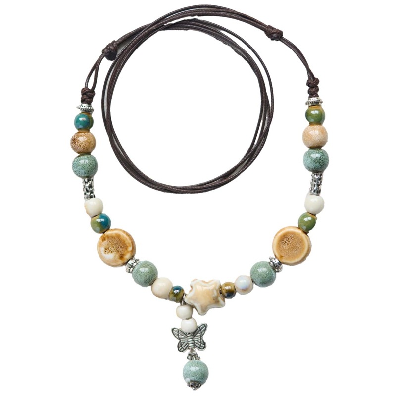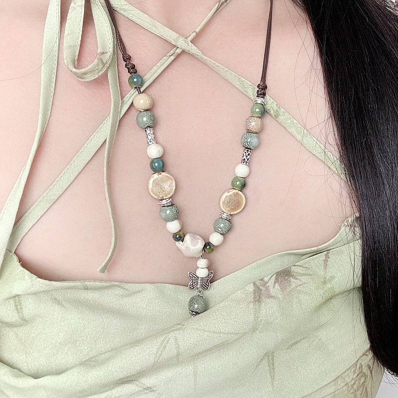 新款景德镇陶瓷饰品民族风古风毛衣链长款项链可调节首饰抖音直播