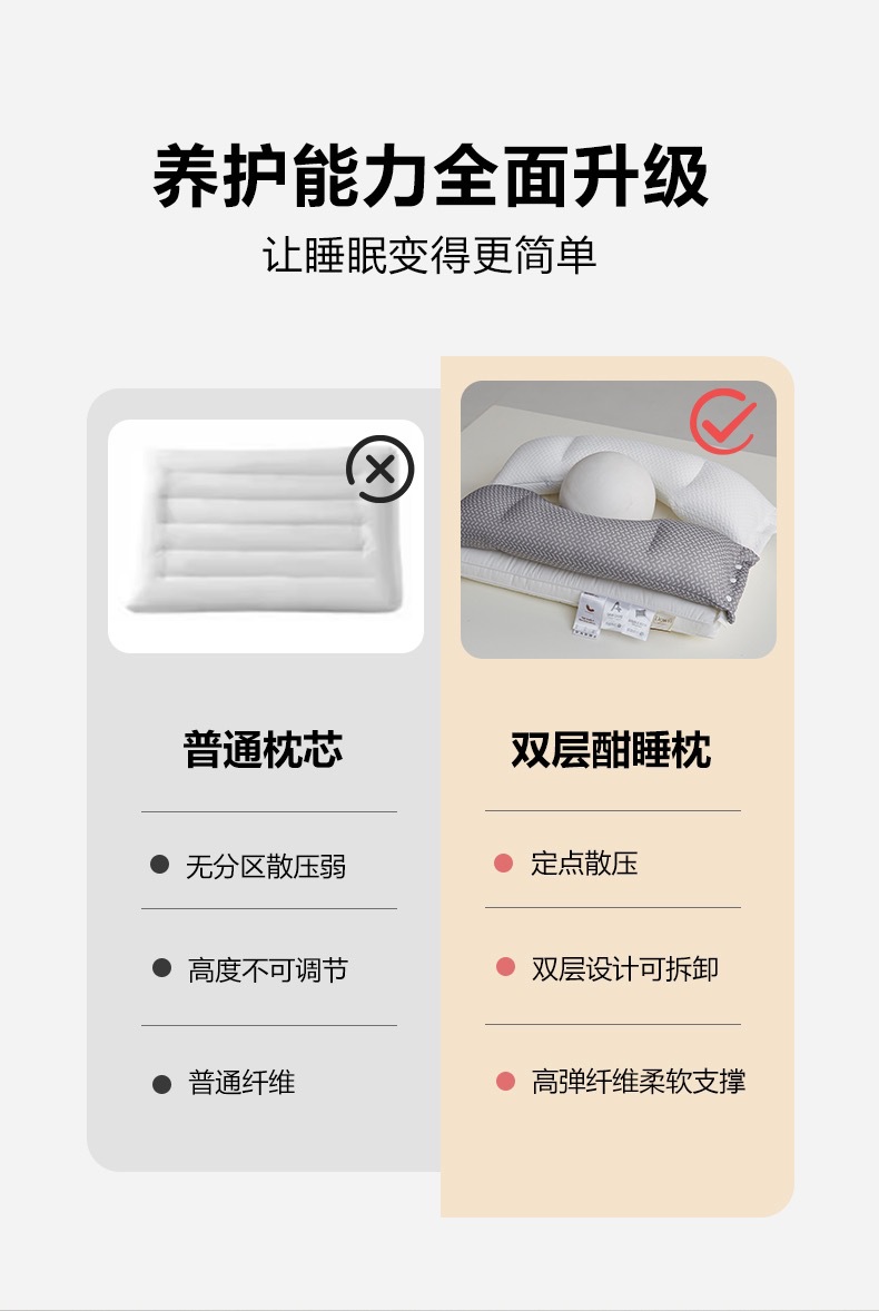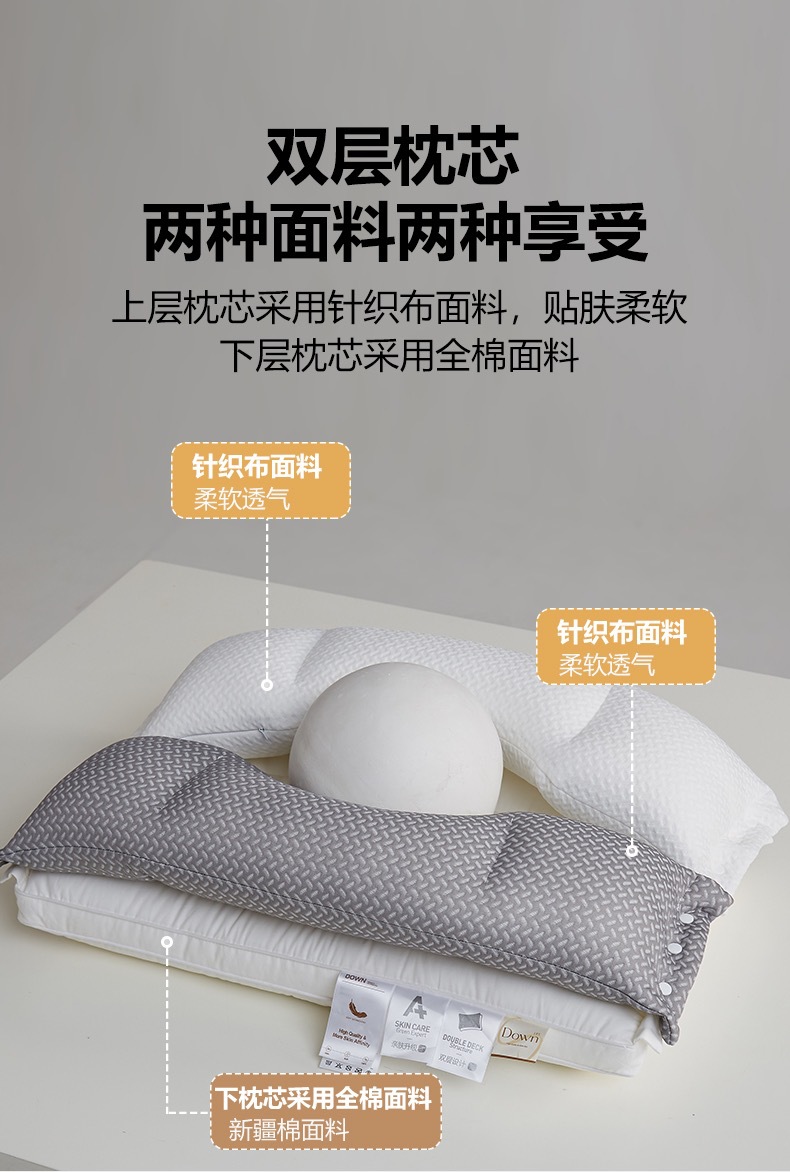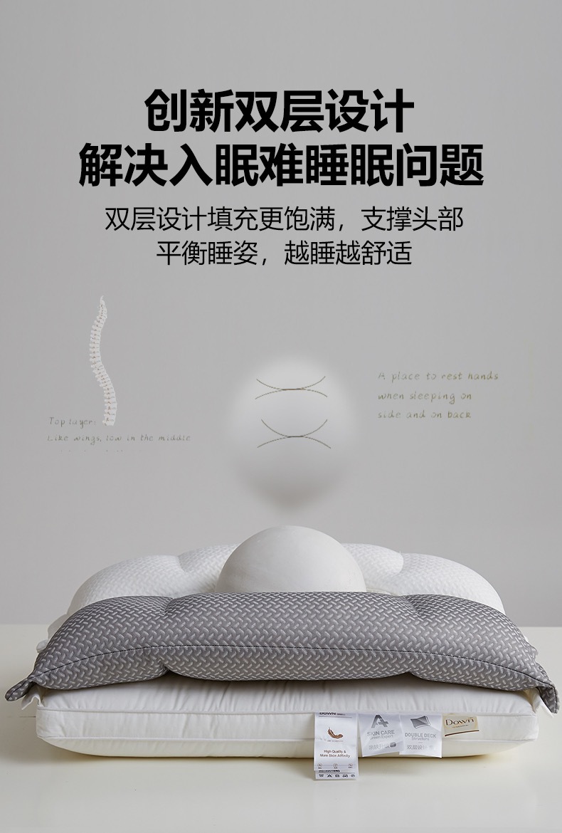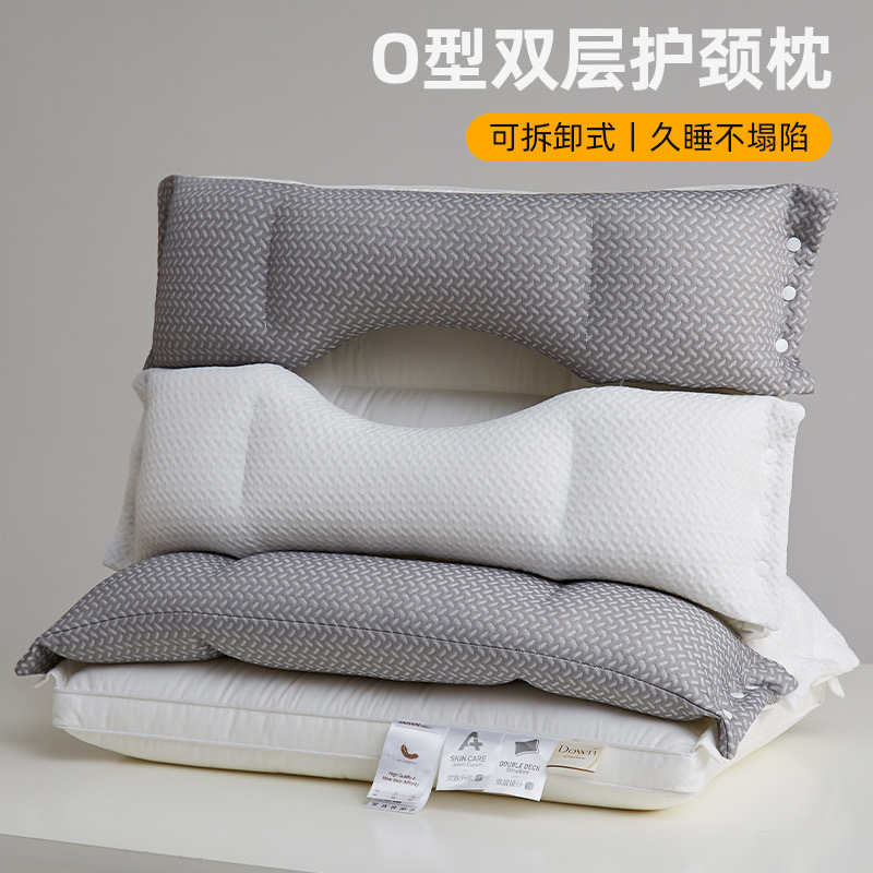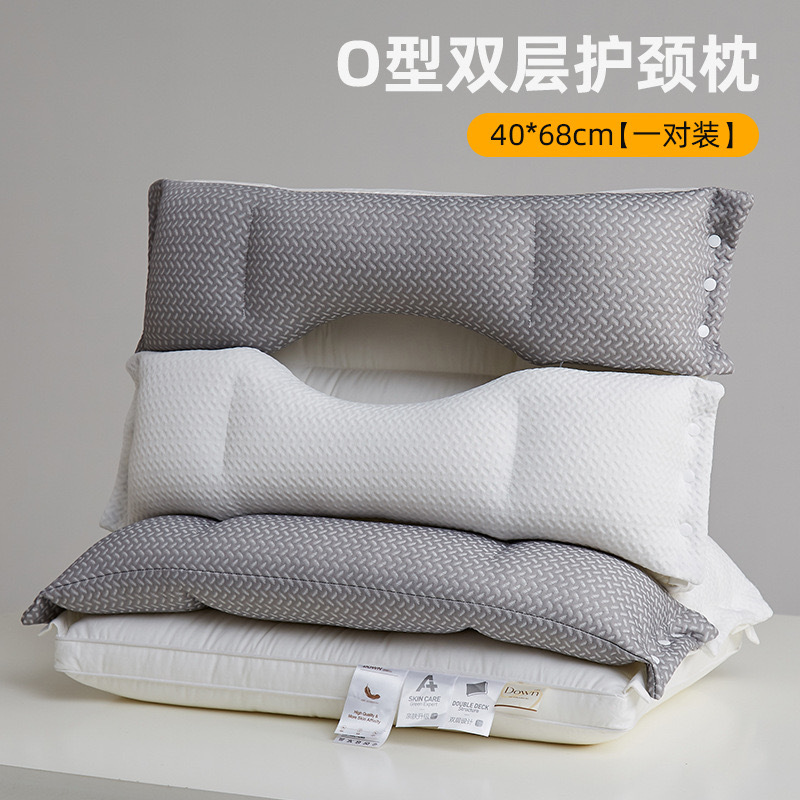 厂家直销双层酣睡枕可拆分枕芯O型对成人护颈成人家用羽丝绒枕芯