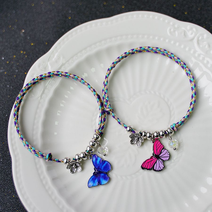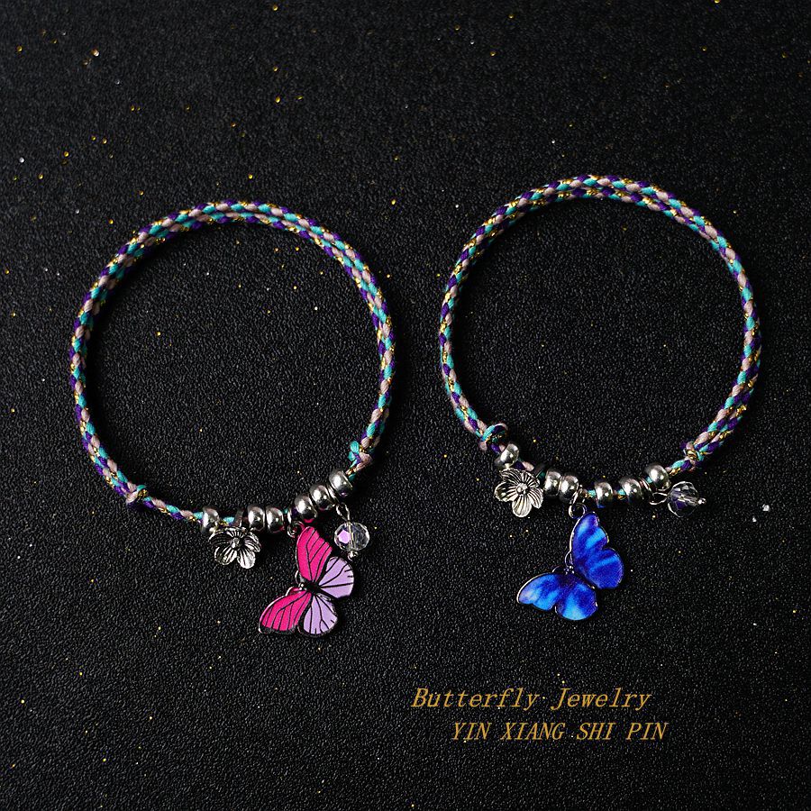 2024年新款蝴蝶情侣手链女 ins小众设计日韩蓝色彩绳手串跨境饰品