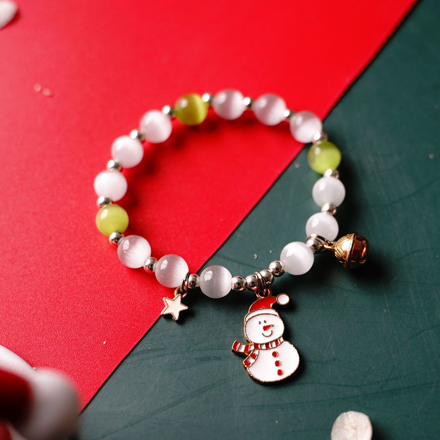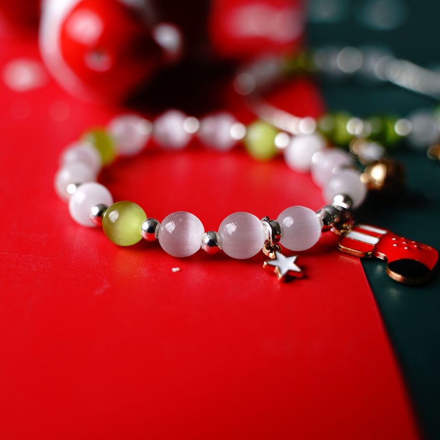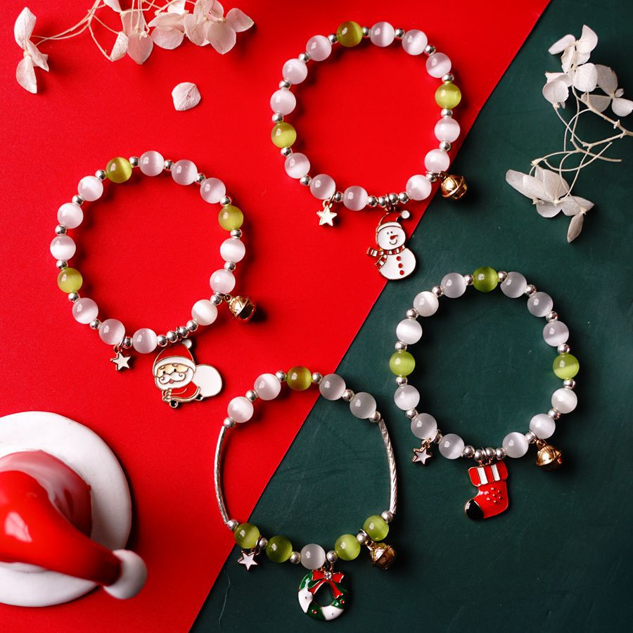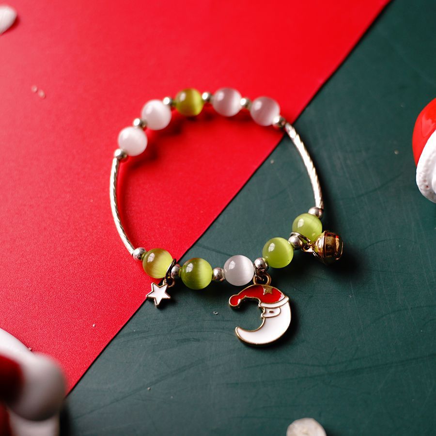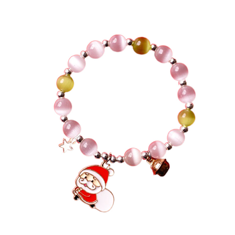 2023新款圣诞节月光石猫眼石串珠手链女欧美流行圣诞老人跨境饰品