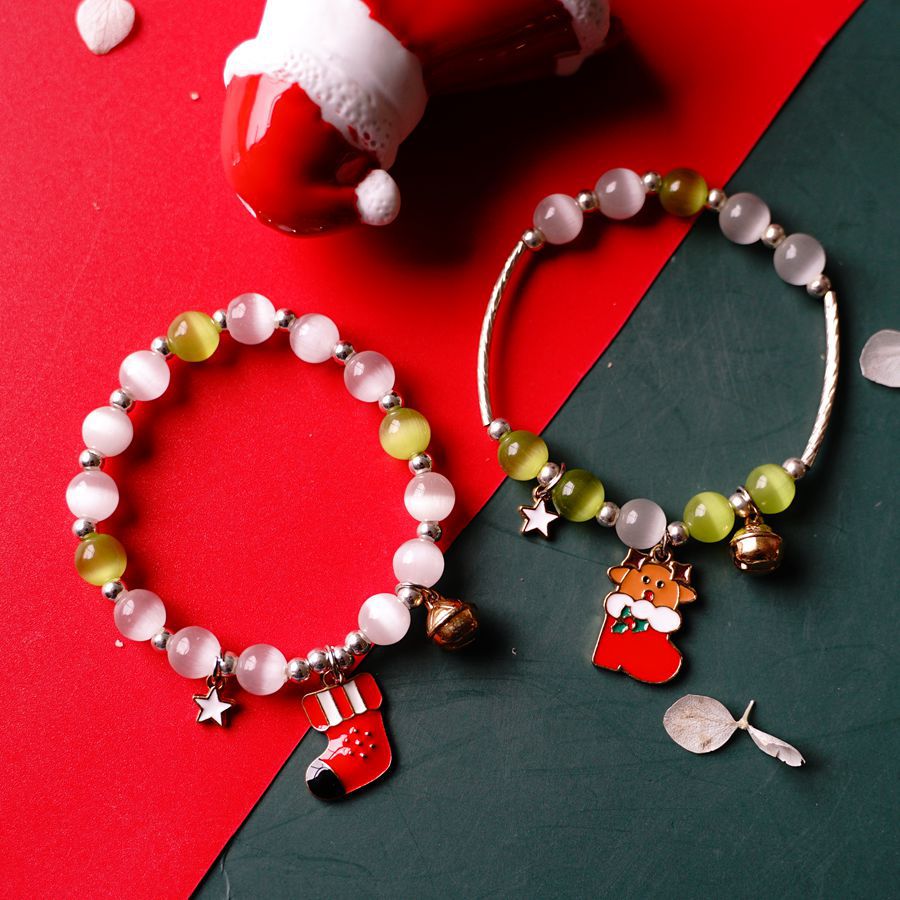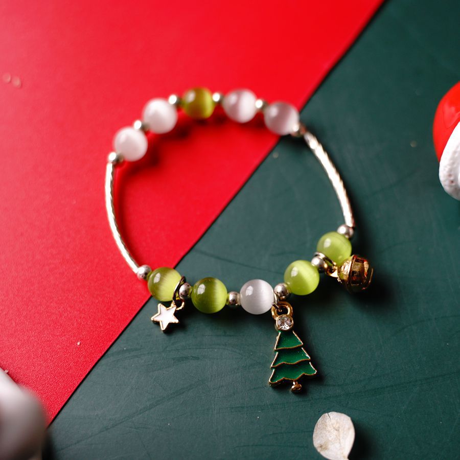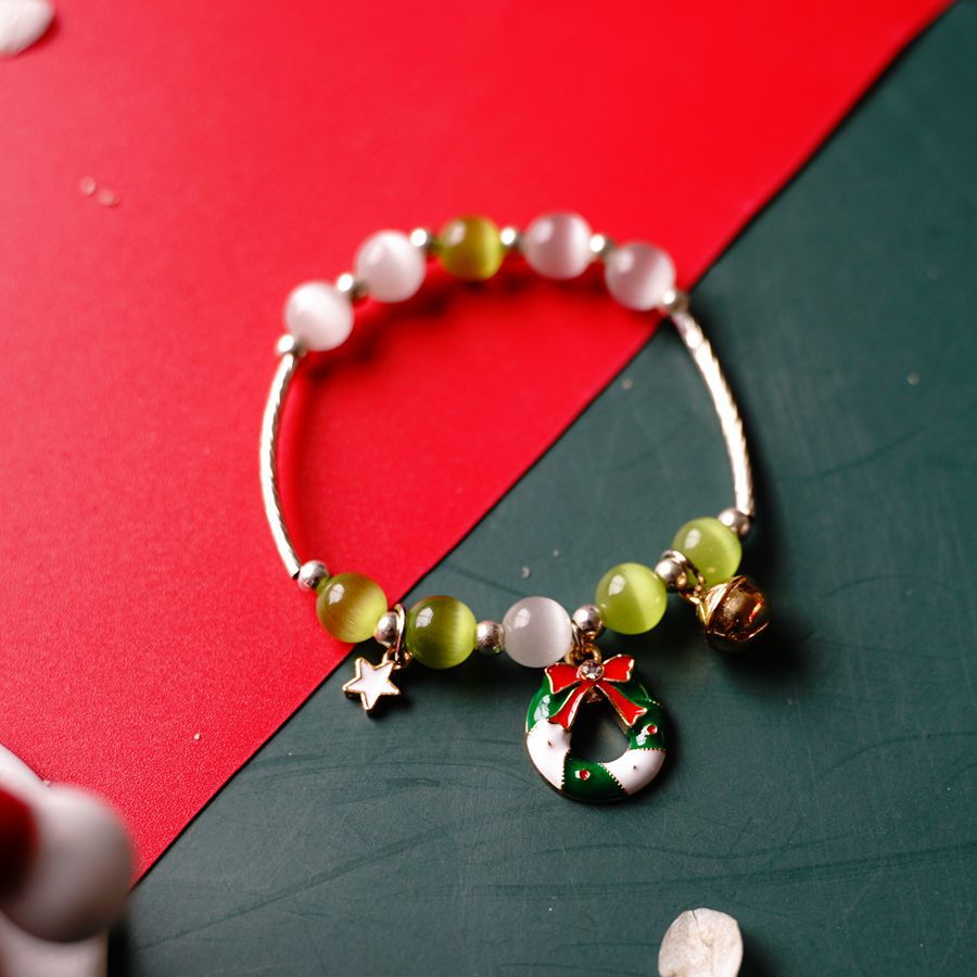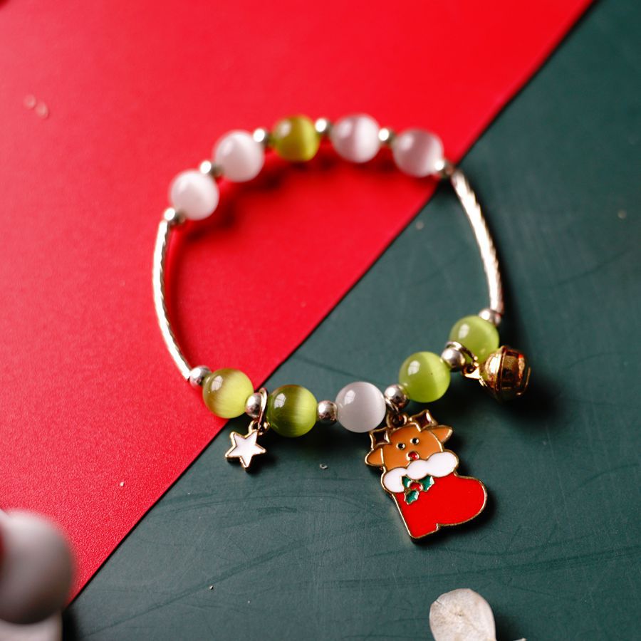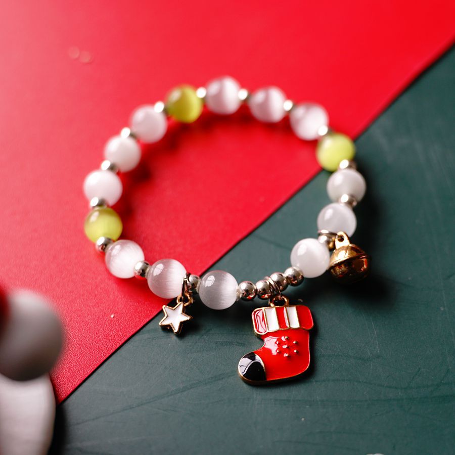 2023新款圣诞节月光石猫眼石串珠手链女欧美流行圣诞老人跨境饰品