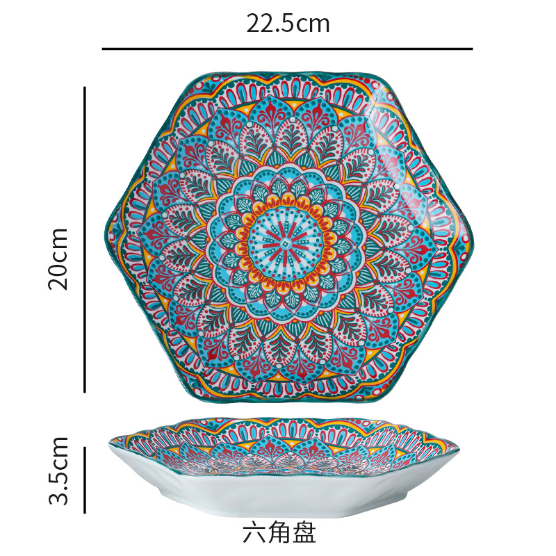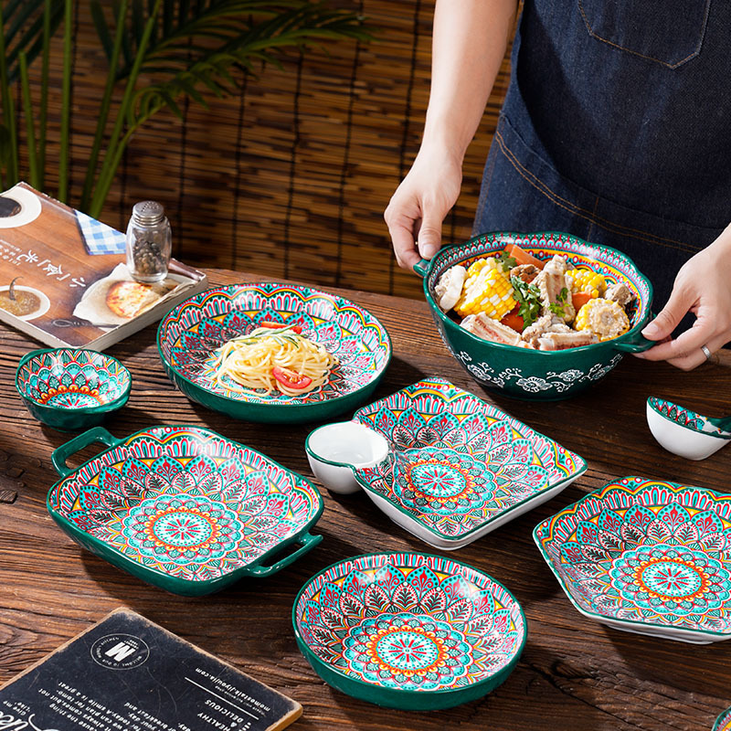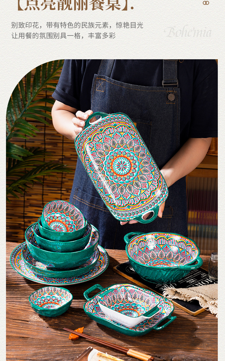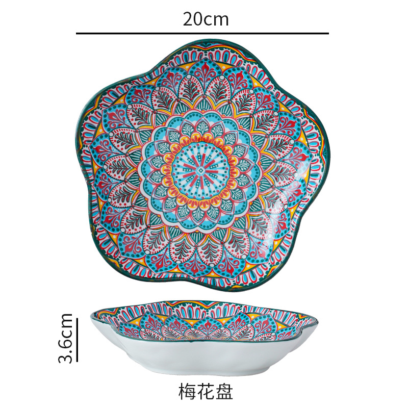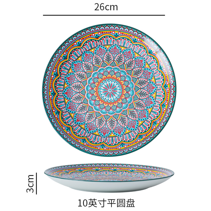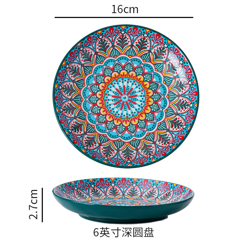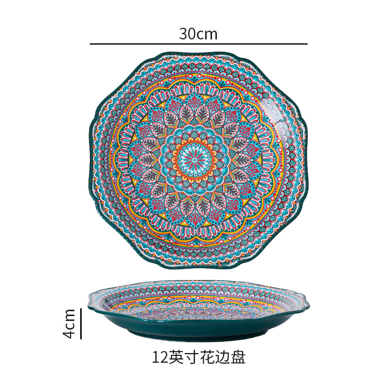 波西米亚陶瓷碗碟家用餐具盘子批发曼陀罗图案春节餐具家用盘碗