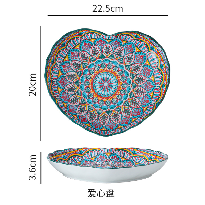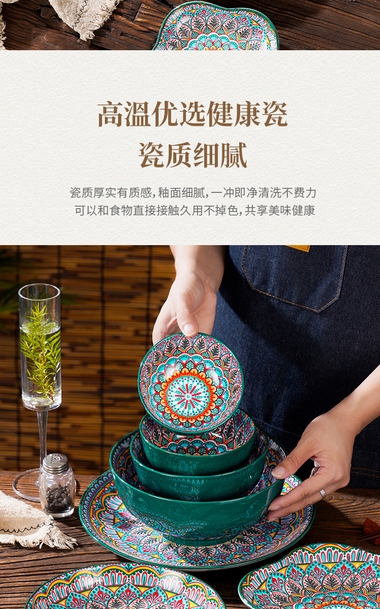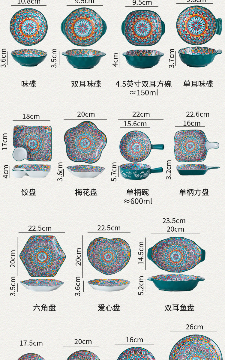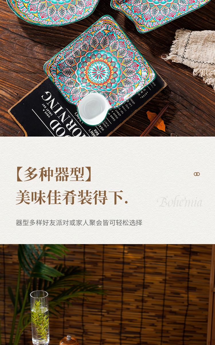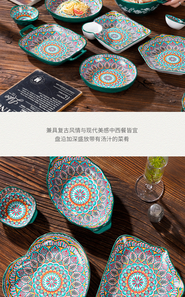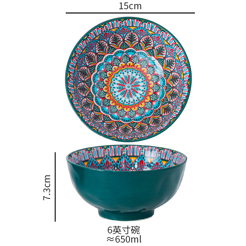 波西米亚陶瓷碗碟家用餐具盘子批发曼陀罗图案春节餐具家用盘碗