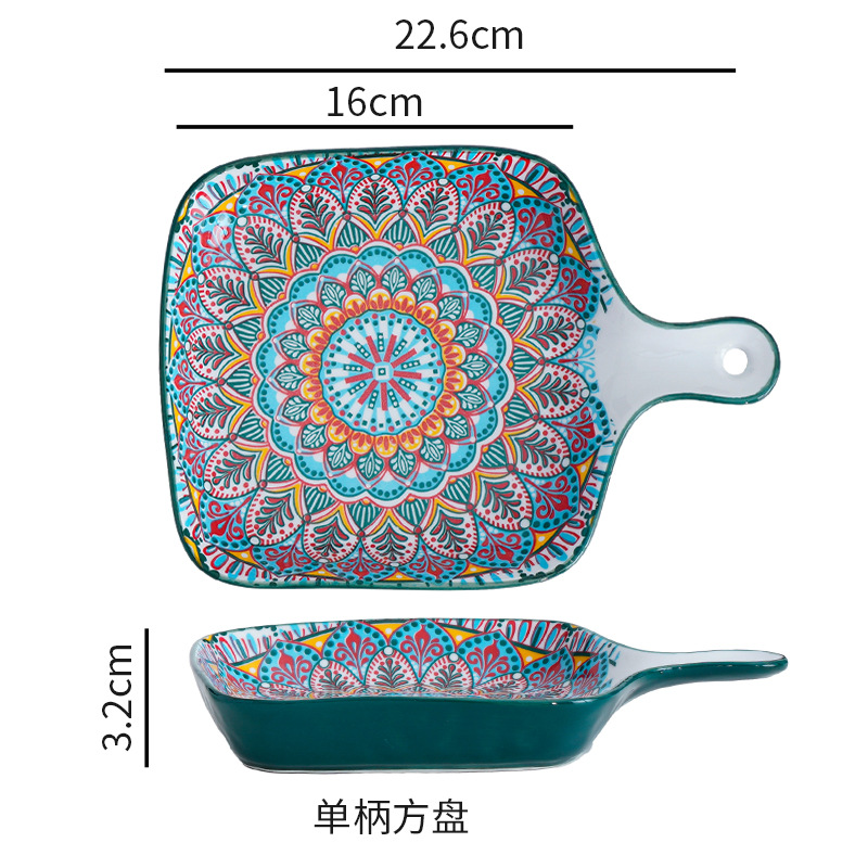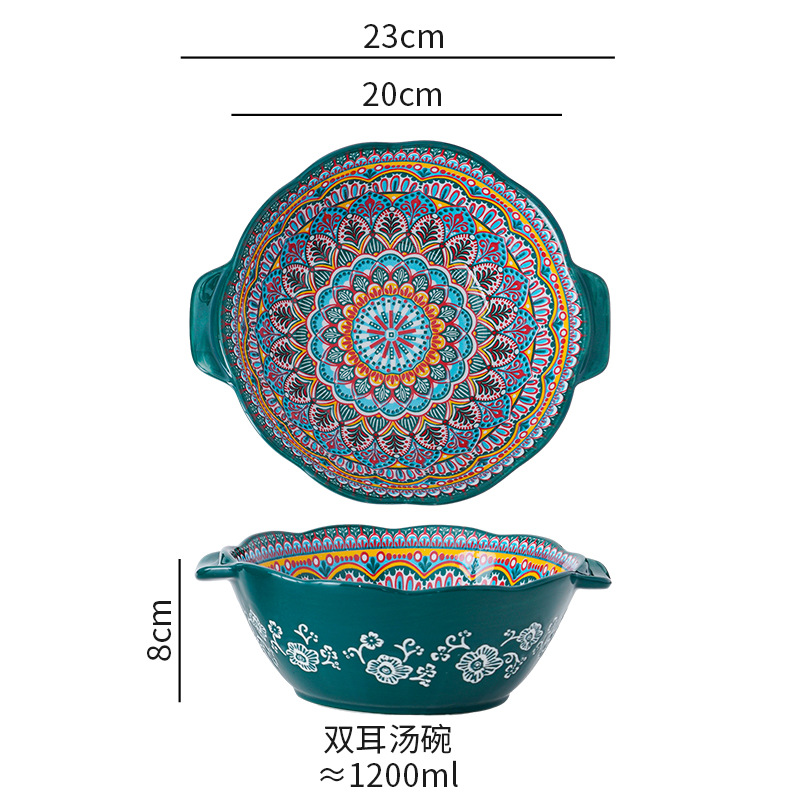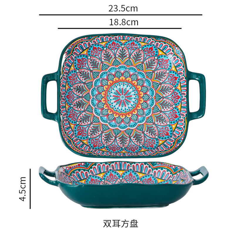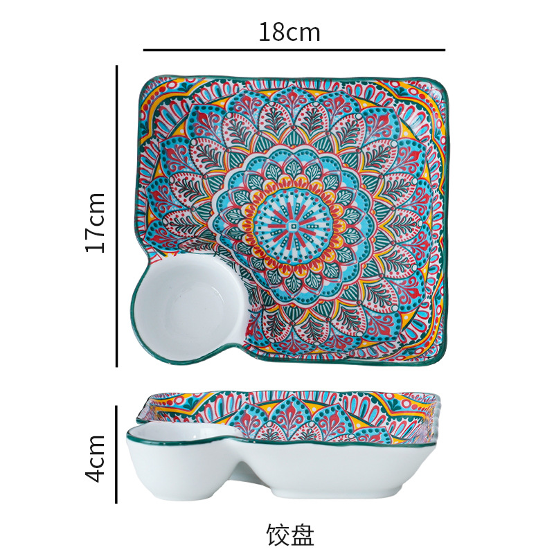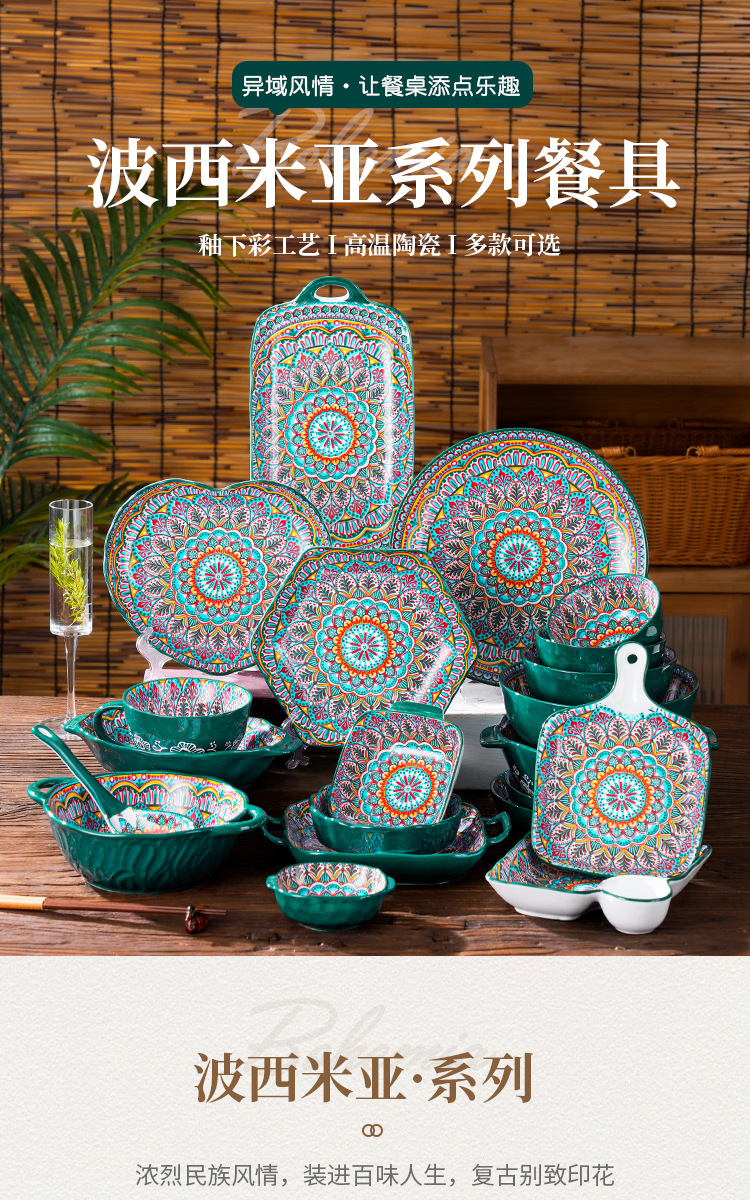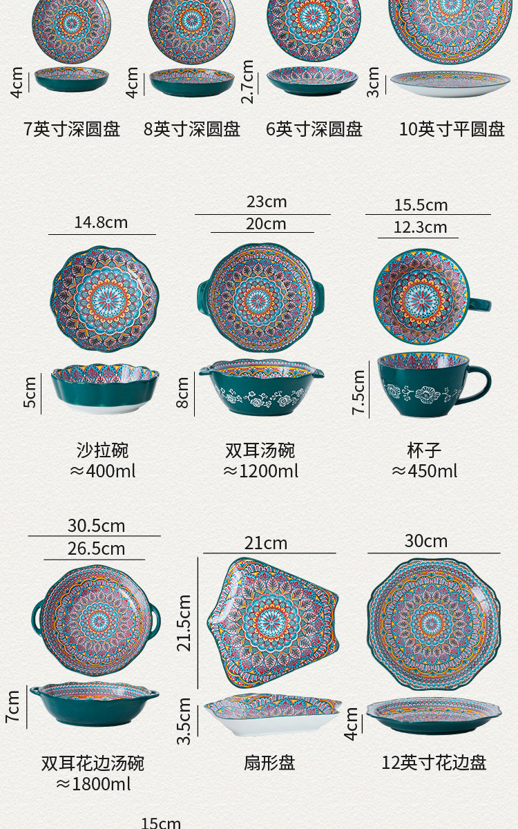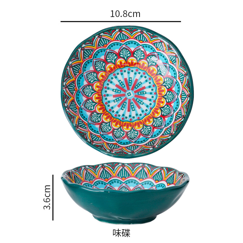 波西米亚陶瓷碗碟家用餐具盘子批发曼陀罗图案春节餐具家用盘碗