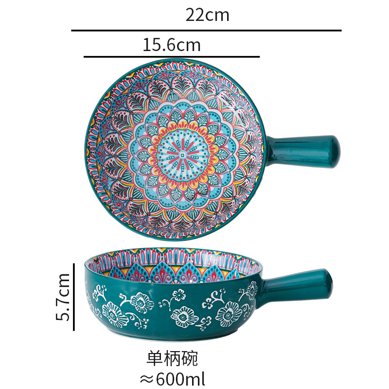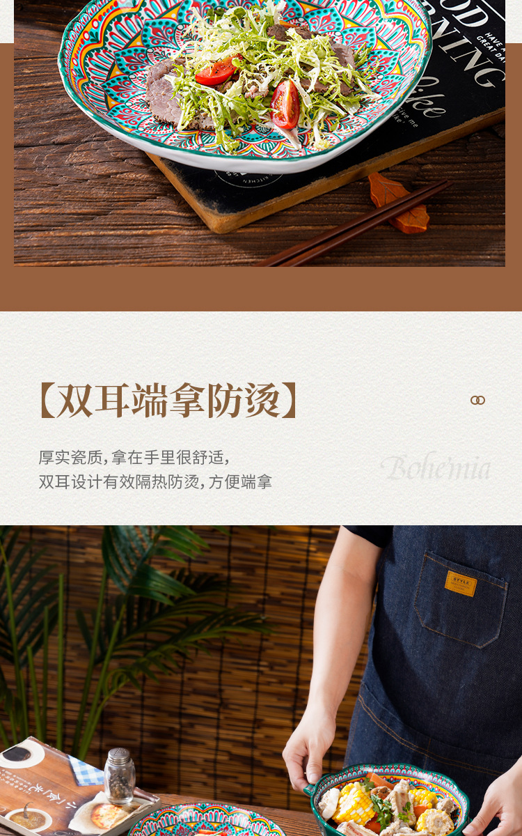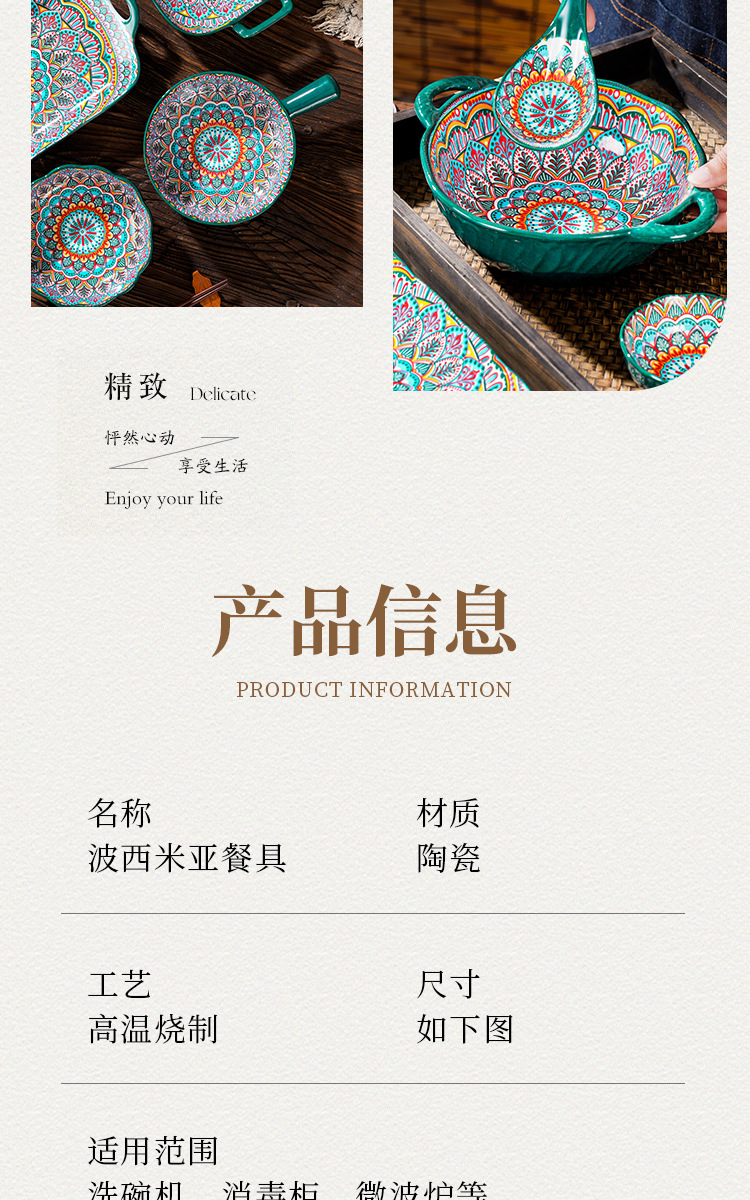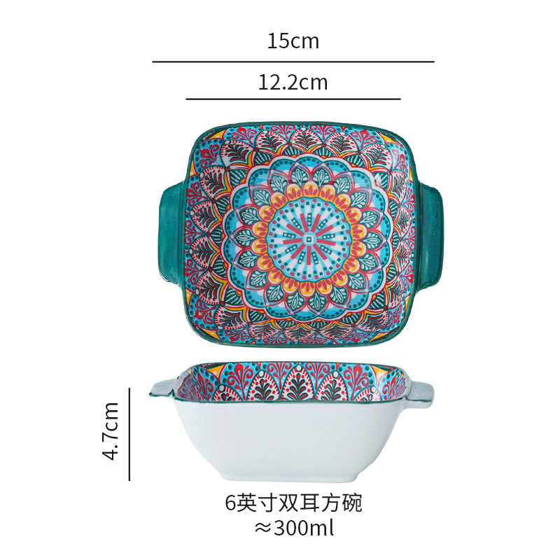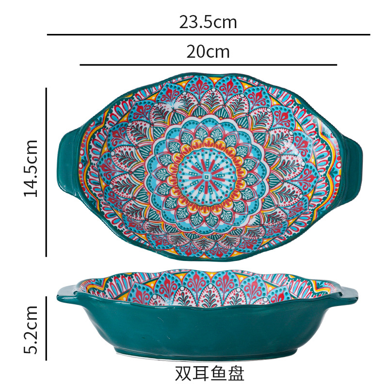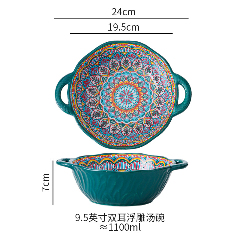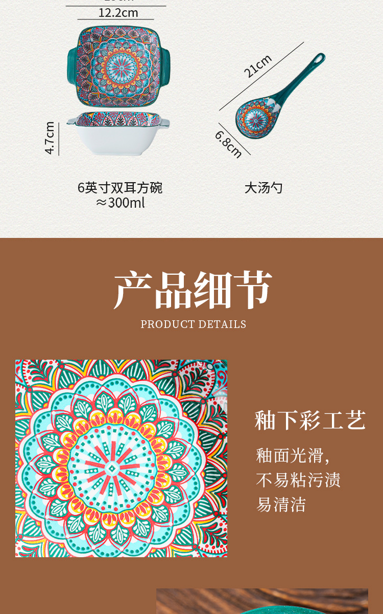 波西米亚陶瓷碗碟家用餐具盘子批发曼陀罗图案春节餐具家用盘碗
