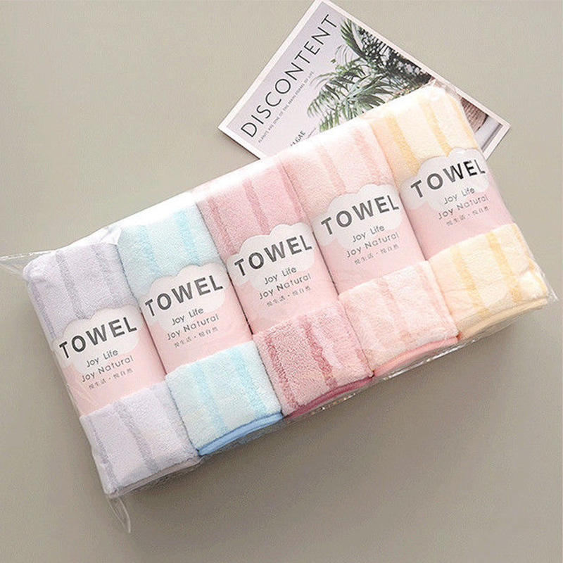 珊瑚绒毛巾一件代发加厚吸水条纹洗脸巾五条装礼品巾批发