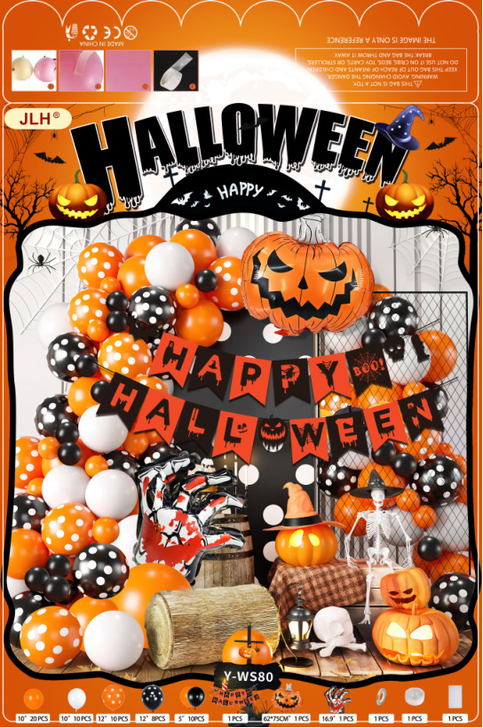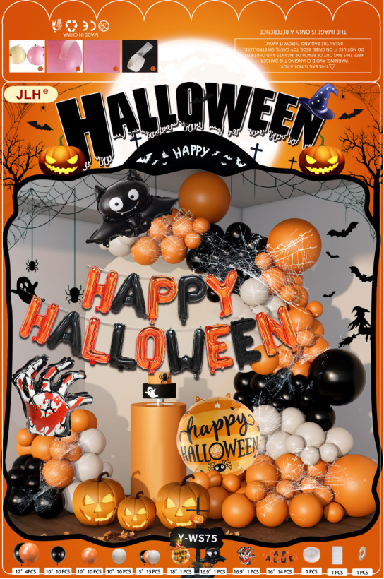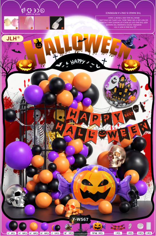 新款外贸英语万圣节派对南瓜蜘蛛骷髅头装饰布置用品批发
