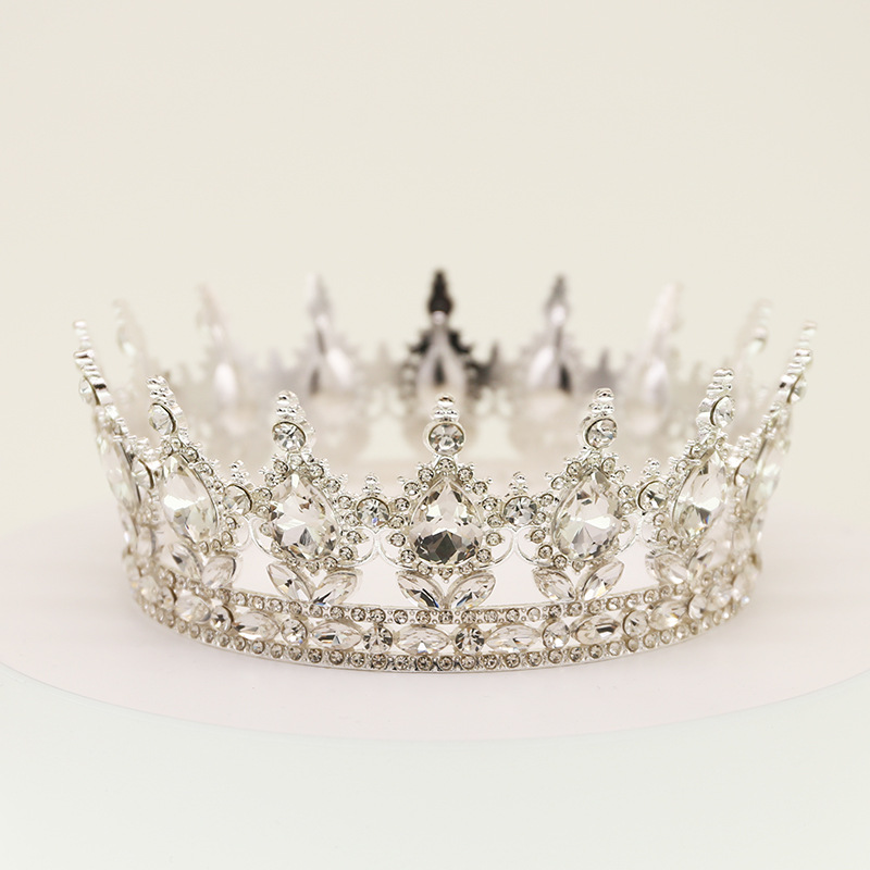 跨境欧美新娘圆形大皇冠巴洛克结婚头饰复古欧式彩色水晶女王成人