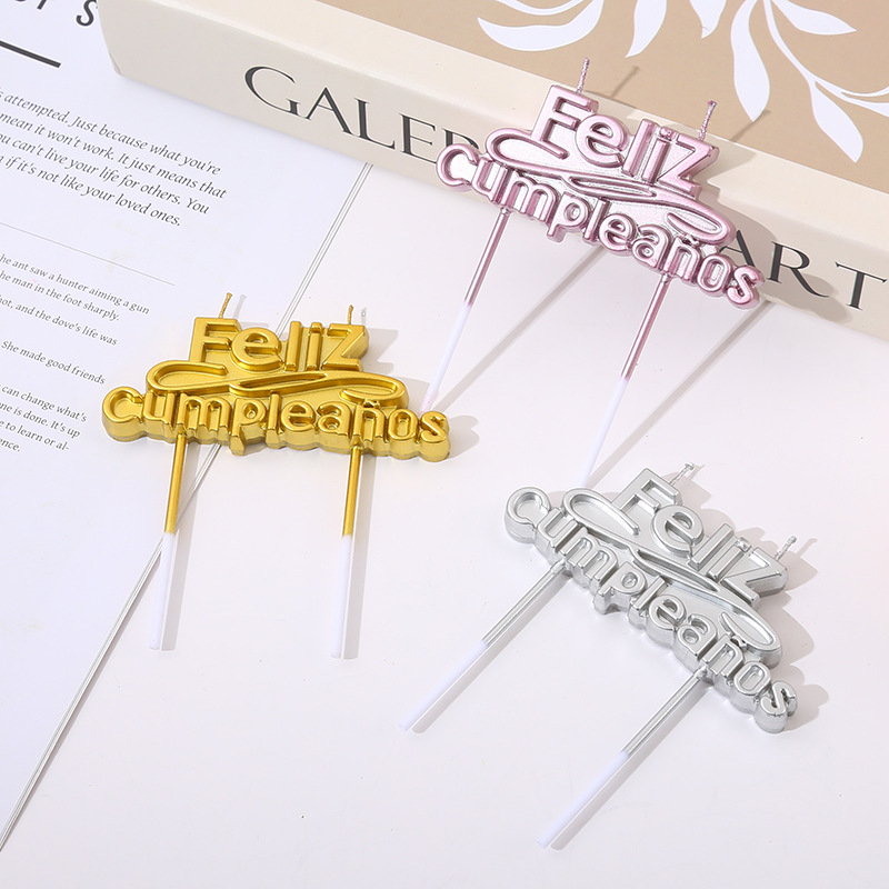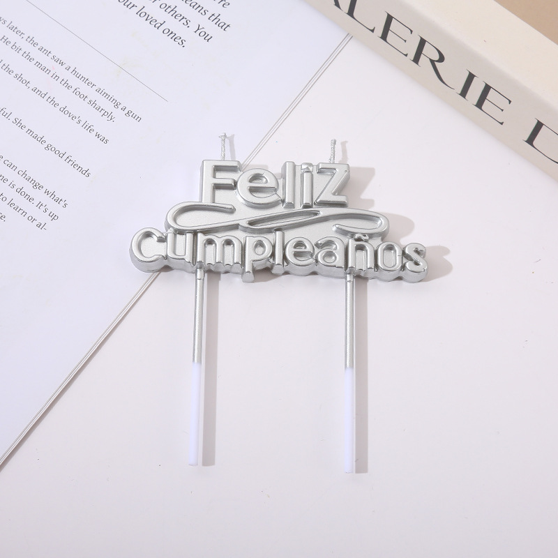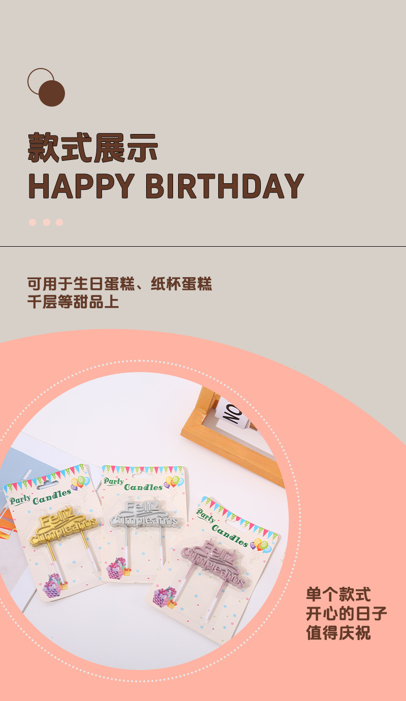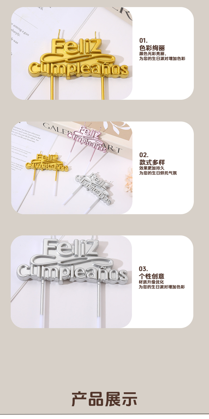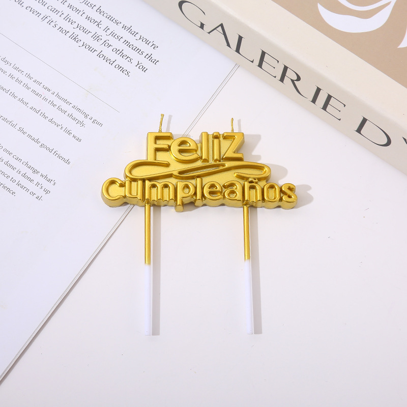 西语金色生日插牌蜡烛气氛烘托插件创意西班牙语生日蛋糕蜡烛插排