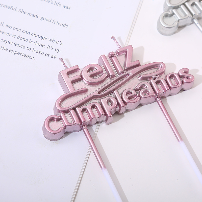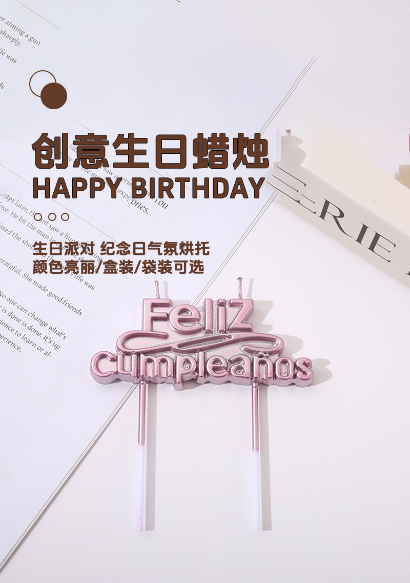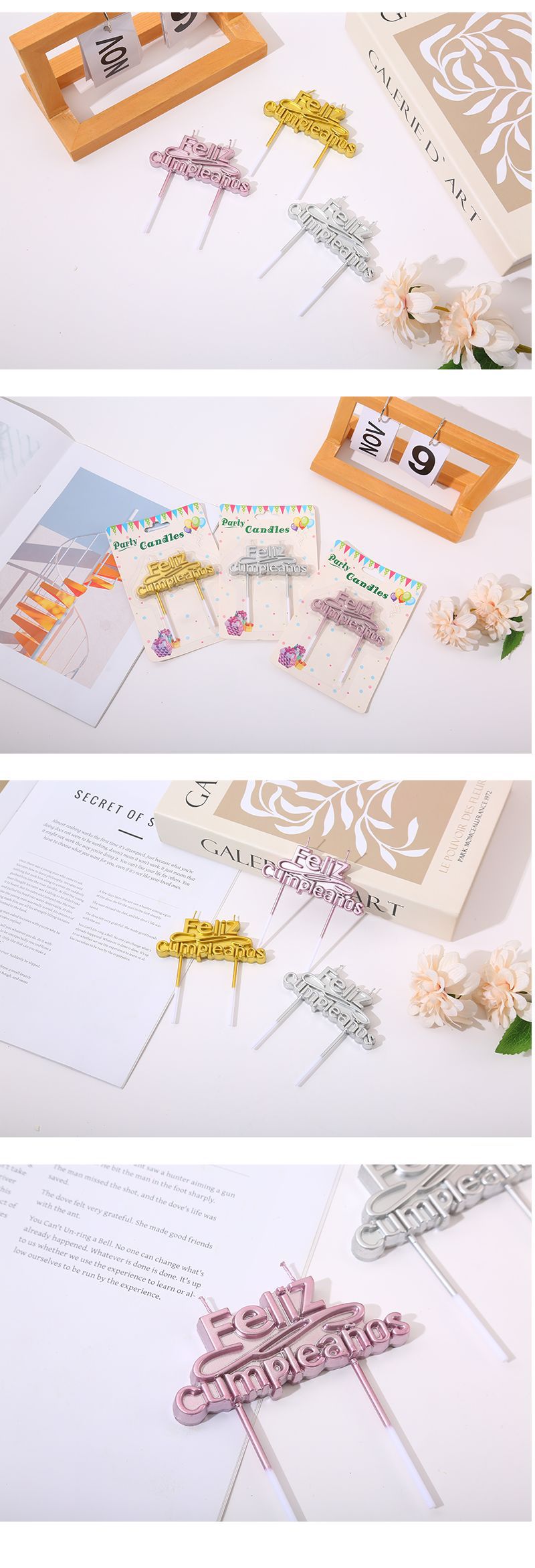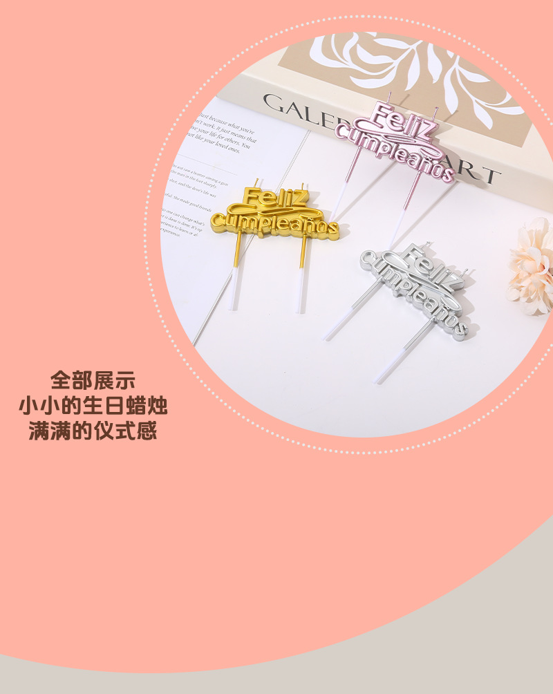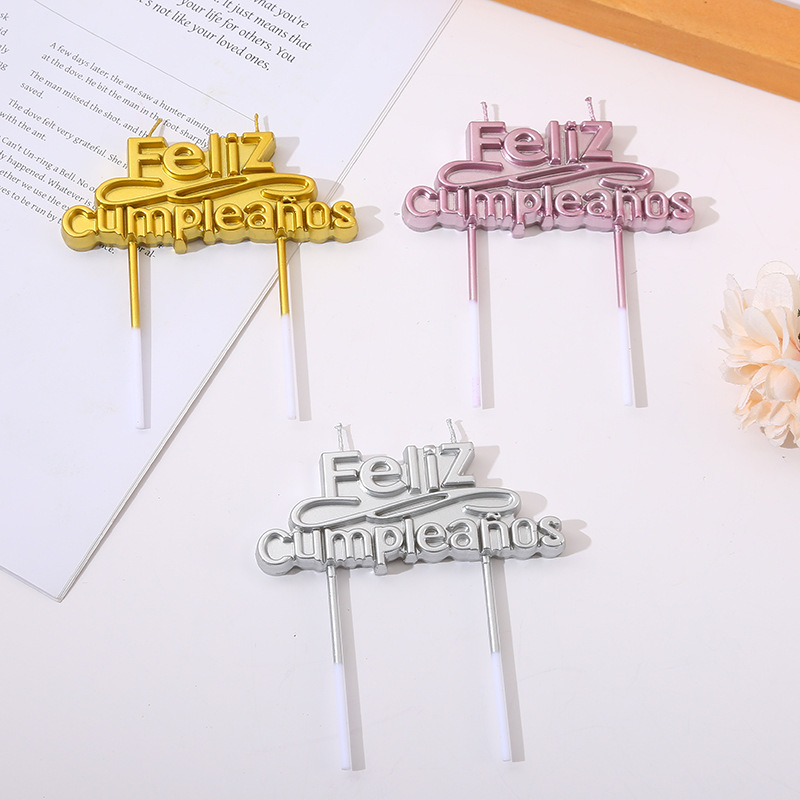 西语金色生日插牌蜡烛气氛烘托插件创意西班牙语生日蛋糕蜡烛插排