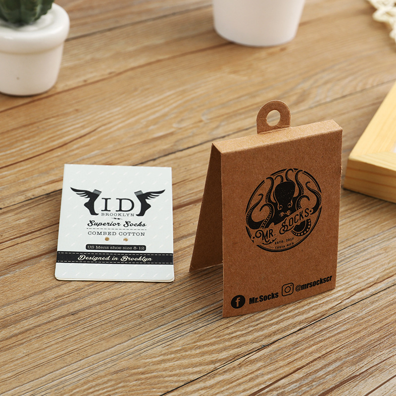 厂家专业定制袜卡对折卡头印刷logo牛皮纸卡吊牌包装卡纸印制