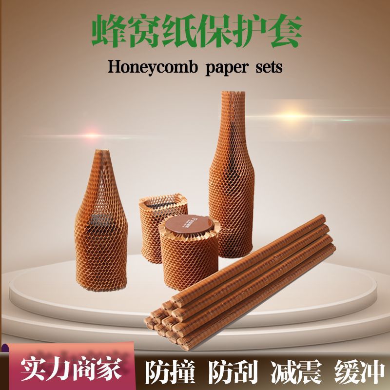 源头厂家红酒缓冲保护材料牛皮纸色蜂巢纸芯70克网眼立体蜂窝纸套