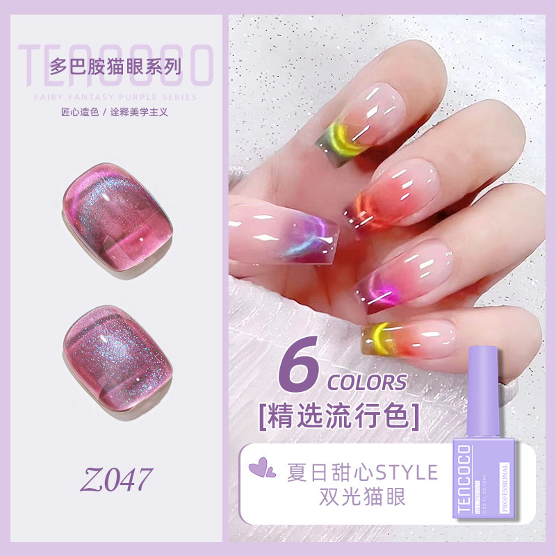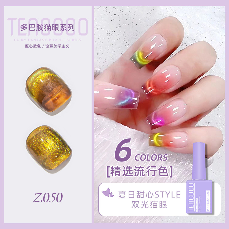 网红爆款双色双光晶石猫眼胶2023美甲新款多巴胺糖果猫眼指甲油胶
