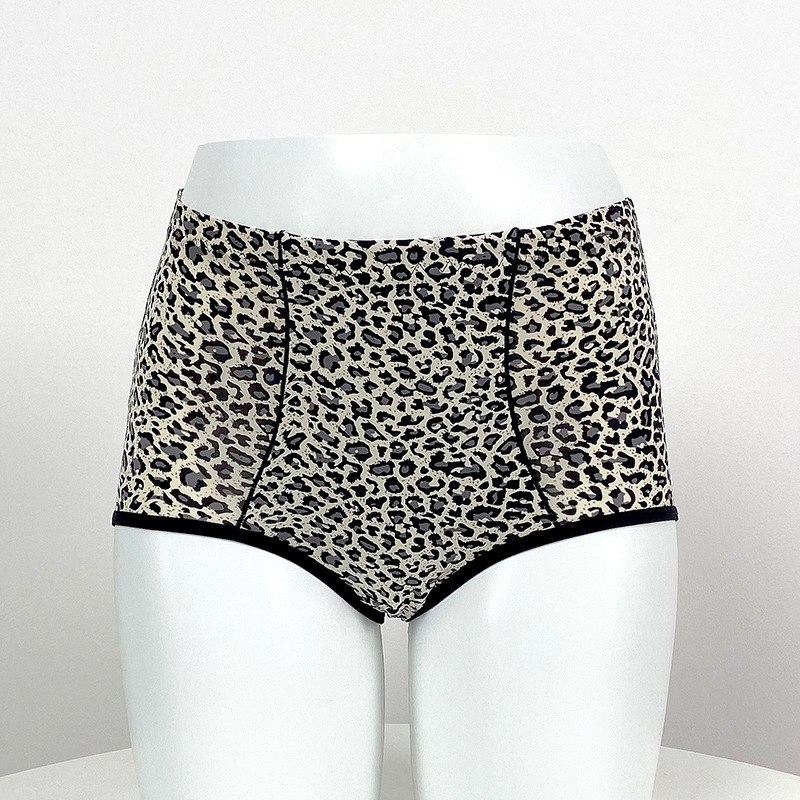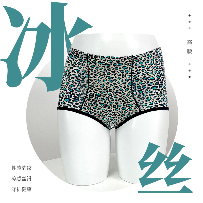 7553夏批发女士大码凉感无痕短裤 收腹中高腰性感豹纹冰丝内裤女