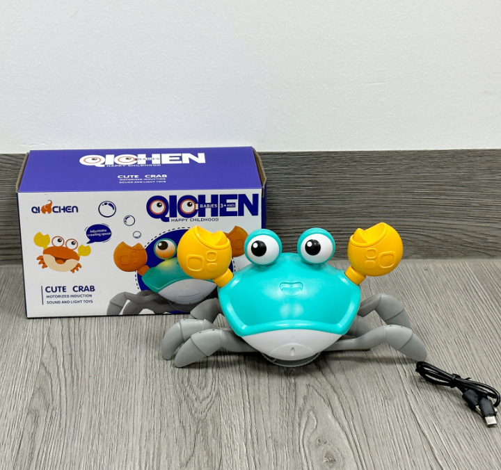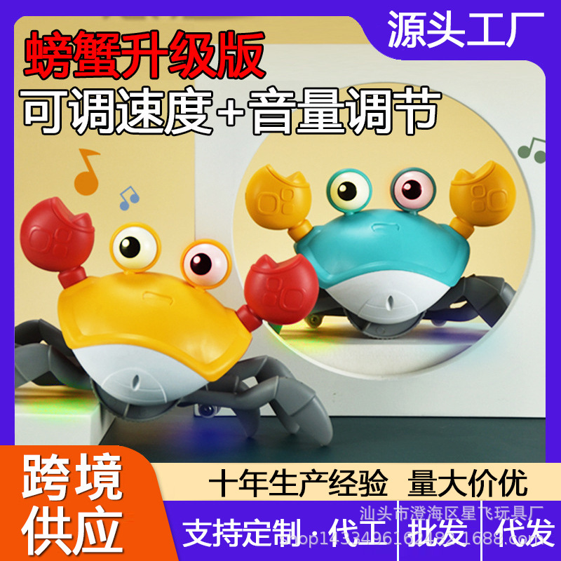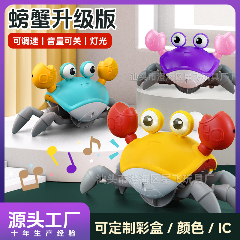 跨境儿童手势电动感应螃蟹玩具充电发光音乐爬行电动螃蟹地摊批发