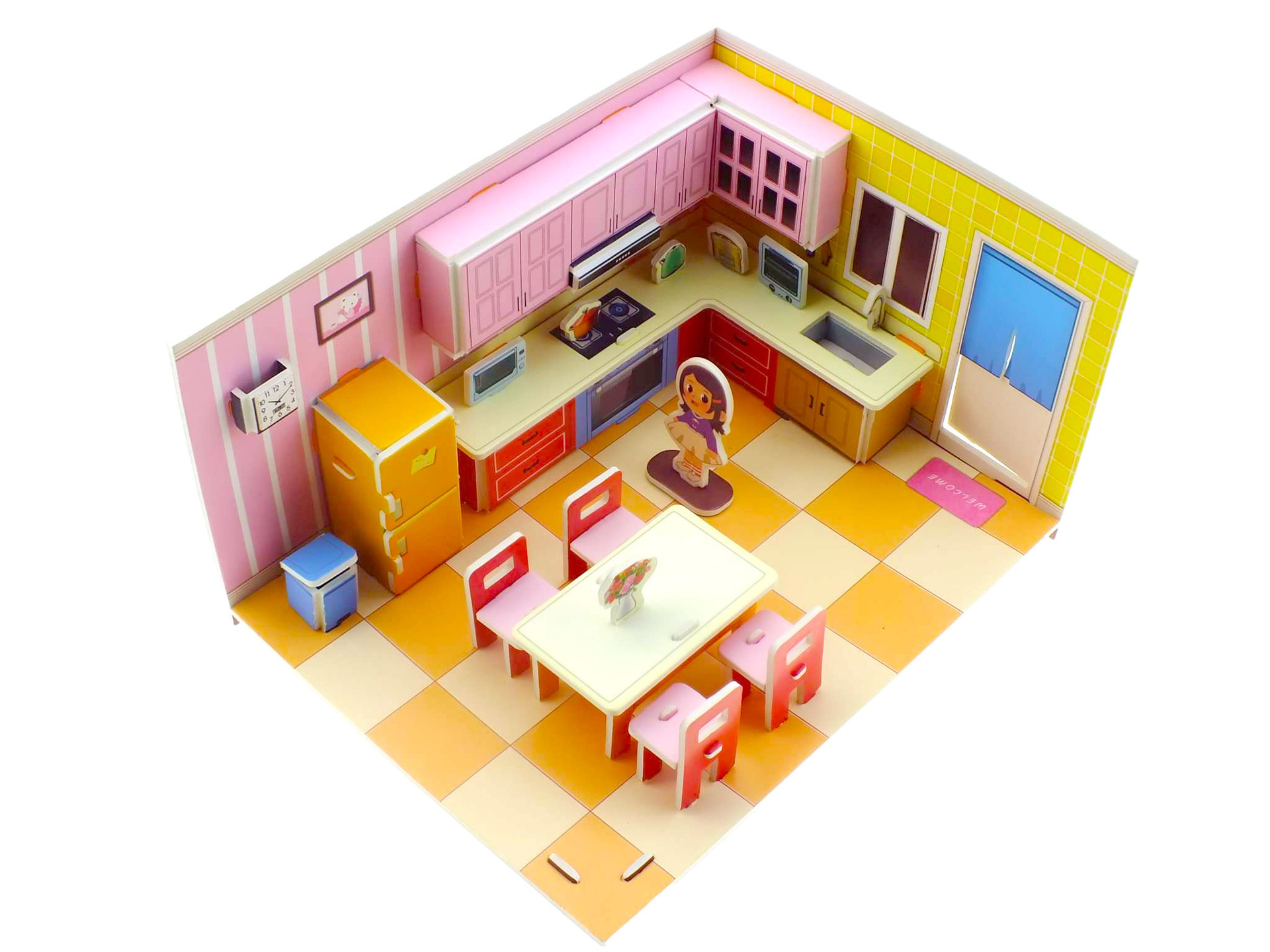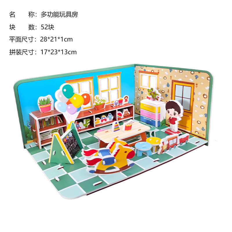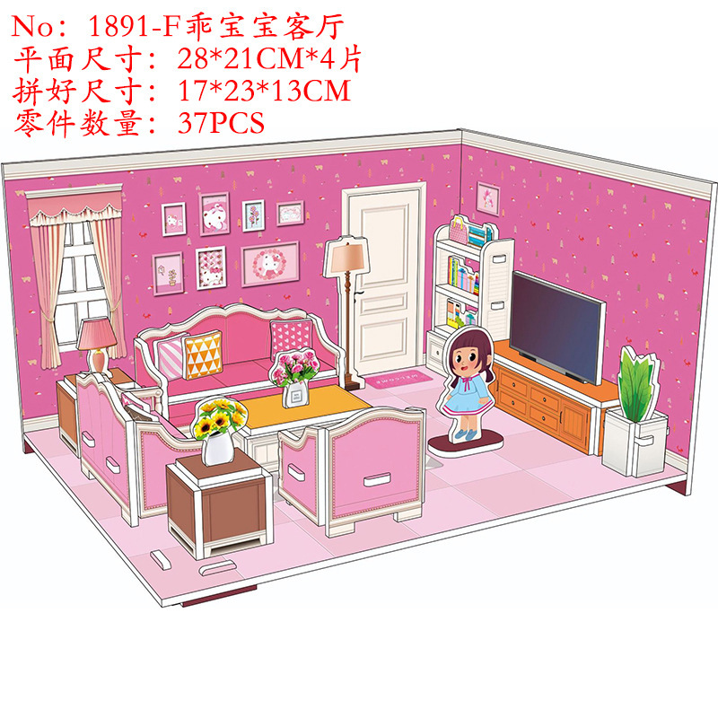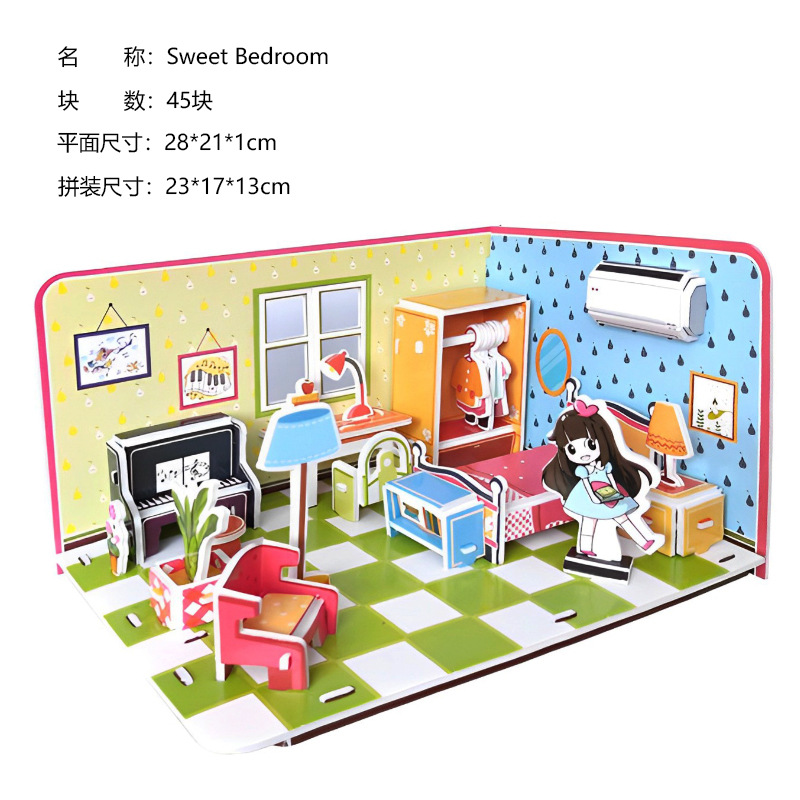 白卡3D立体大四片纸质拼图玩具 场景女生系列礼物3d拼图小孩玩具