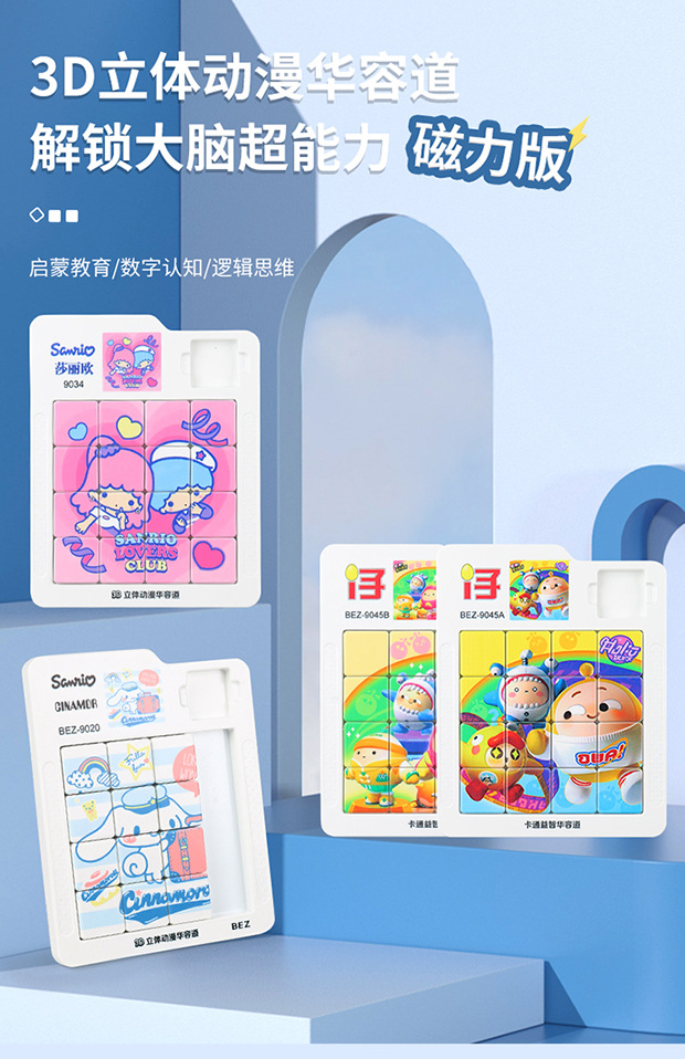三丽鸥磁力华容道儿童益智动脑卡通玩具移动方块滑块拼图摆摊批发