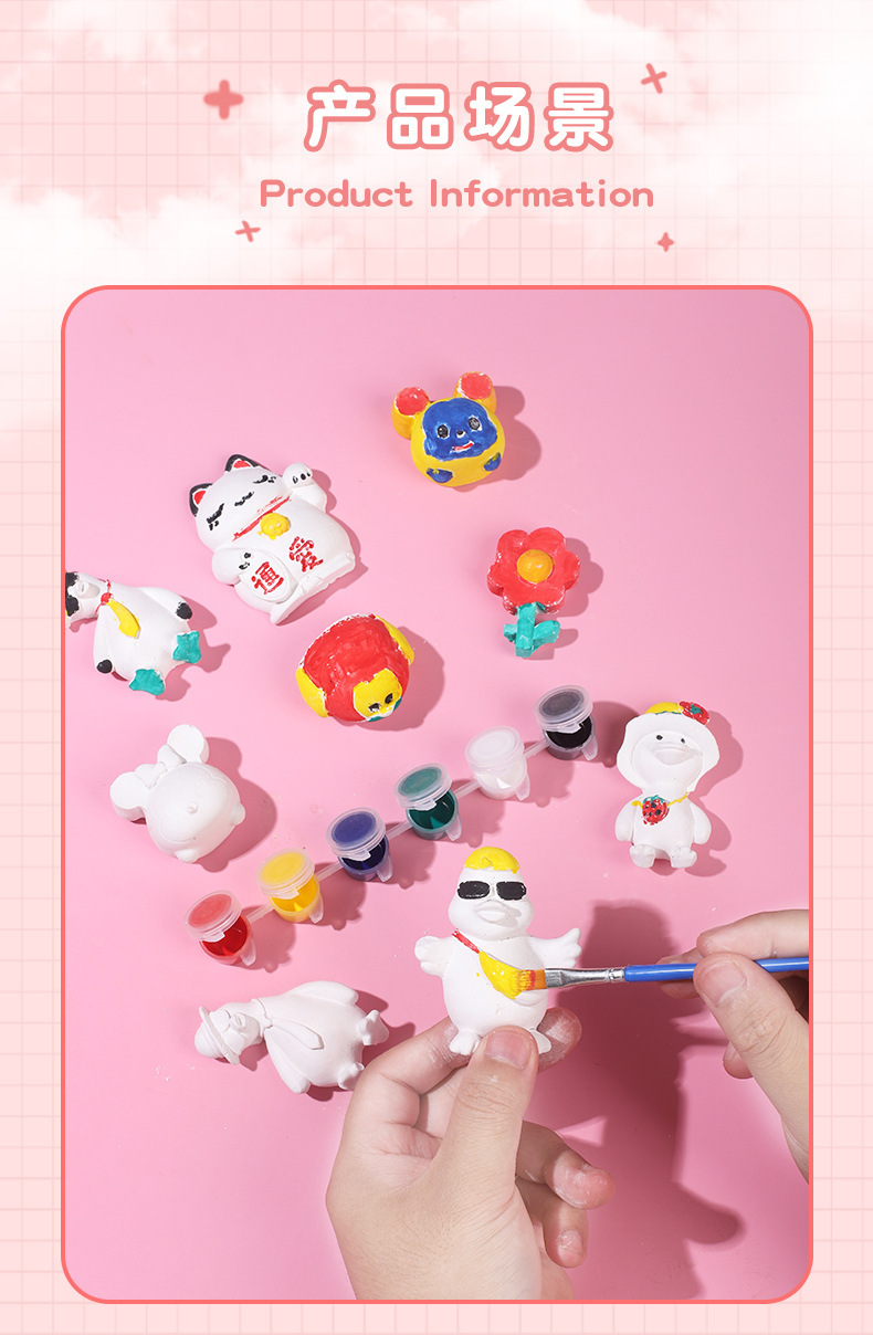 石膏娃娃儿童涂色画创意涂鸦流体熊diy 彩绘石膏娃娃填色地摊礼品