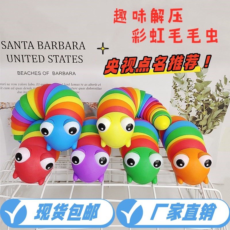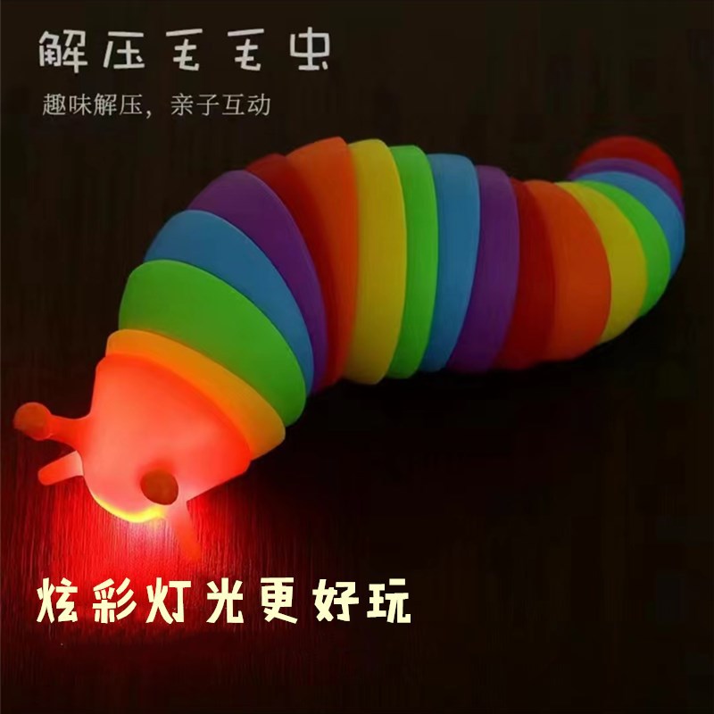 解压发光眼睛毛毛虫触角鼻涕虫 龙虾 鳄鱼 跨境地摊儿童发光玩具
