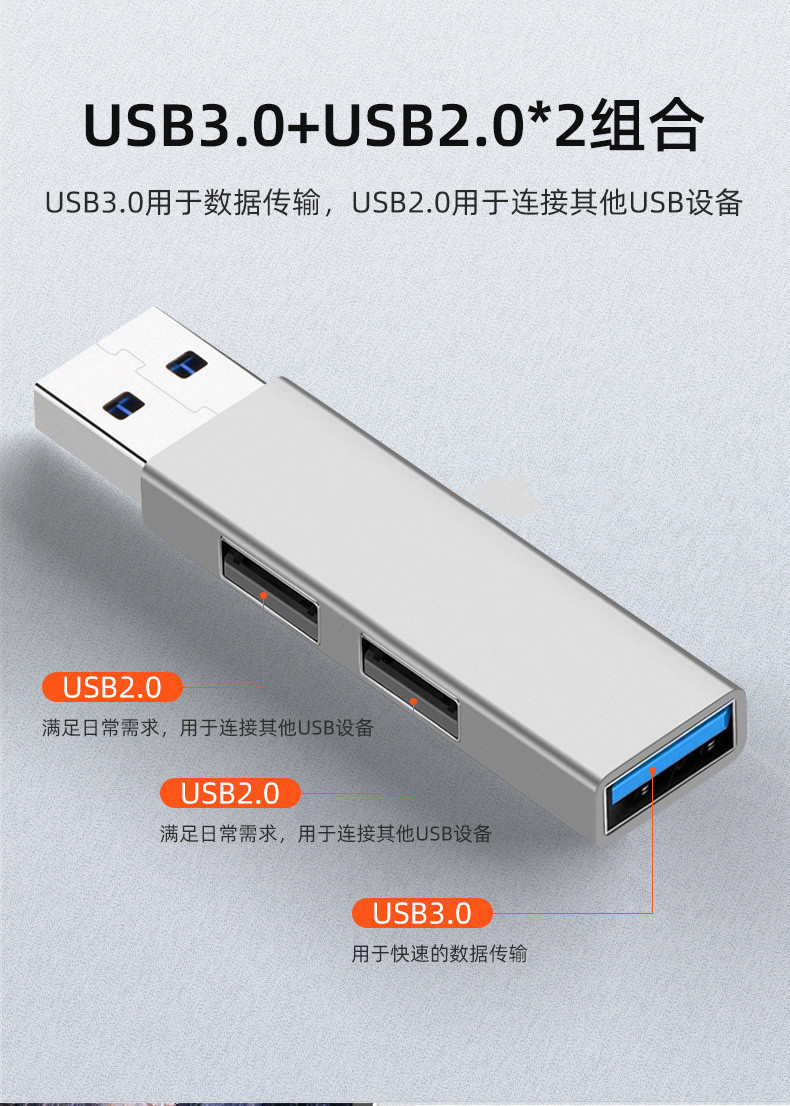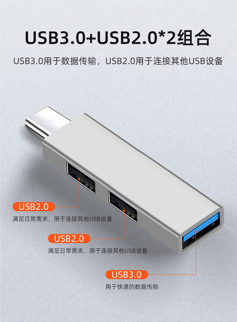 转接头分线器3.0接口hub集线器电脑多功能拓展坞一拖三 USB扩展器
