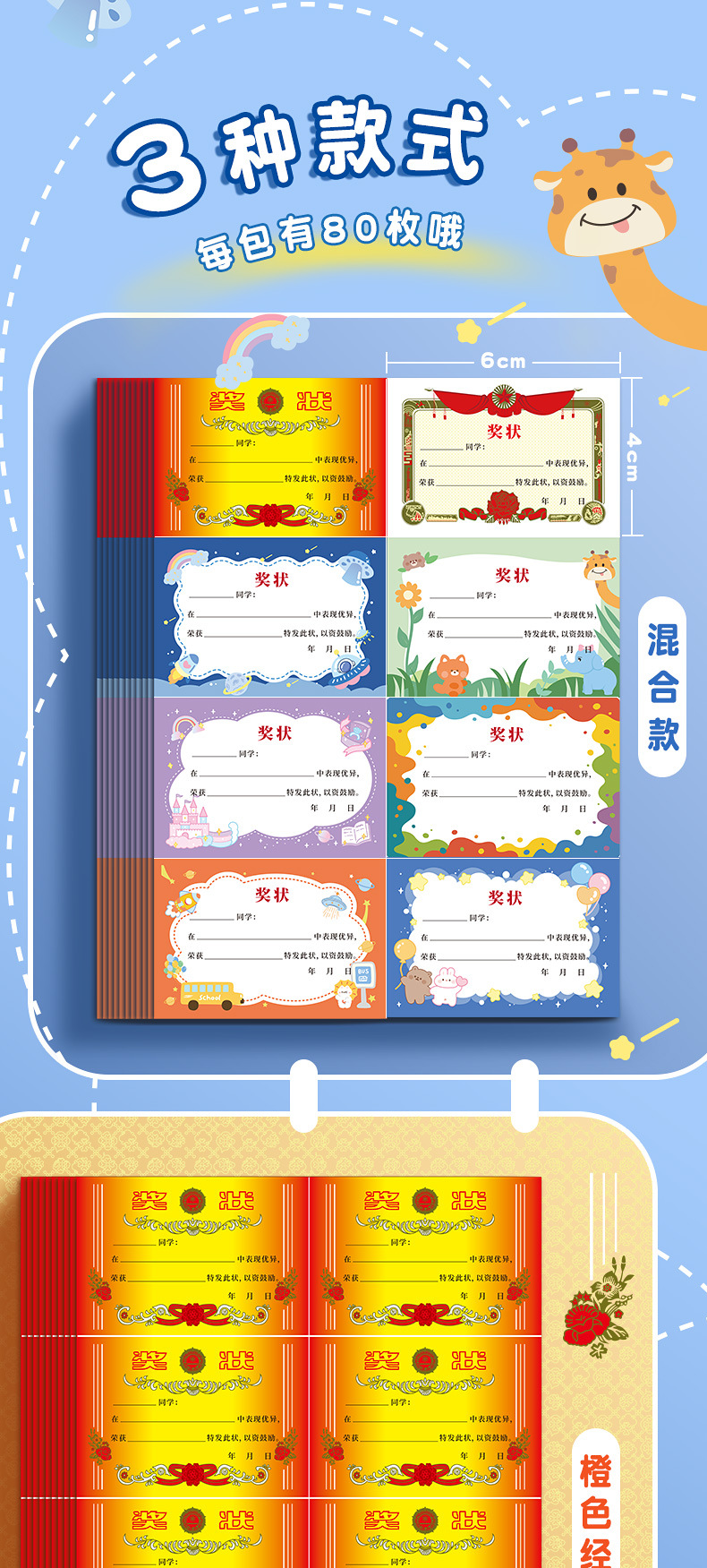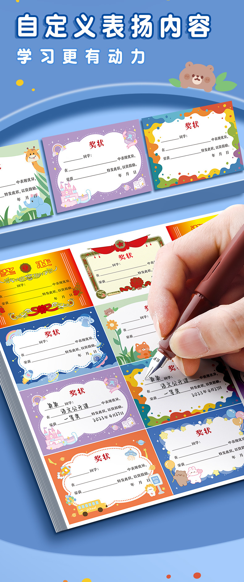 咔巴熊奖状贴纸小学生奖励贴纸鼓励班级儿童幼儿园一年级三好学生
