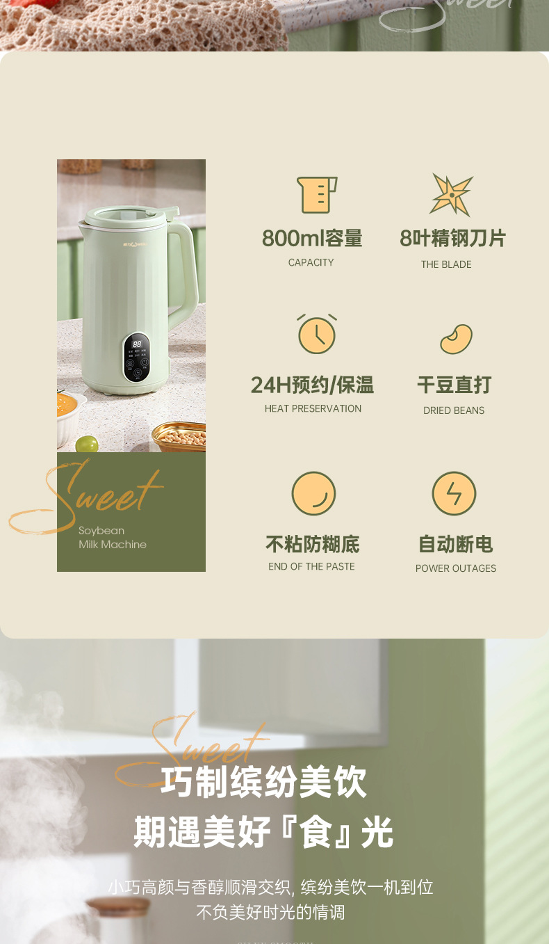 多功能豆浆机小型家用免过滤全自动免煮辅食料理搅拌迷你破壁机