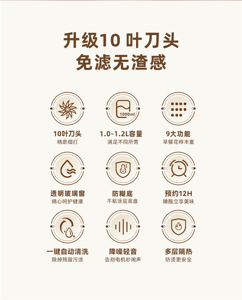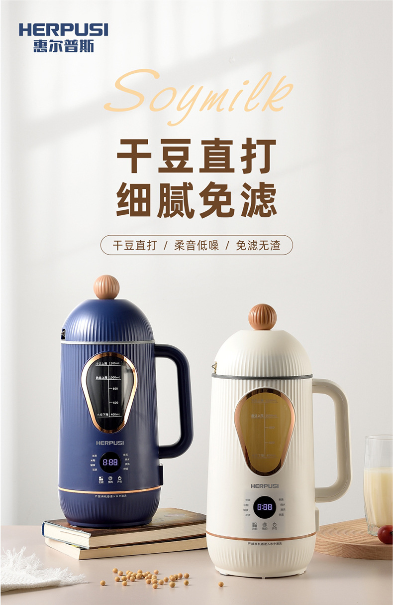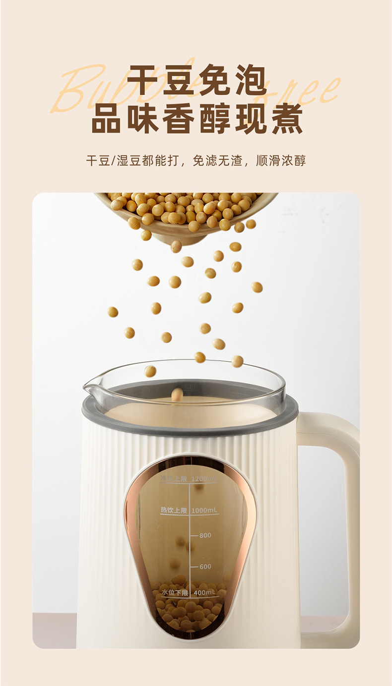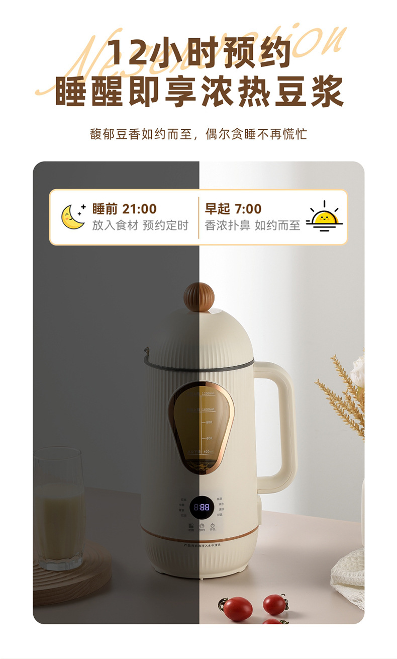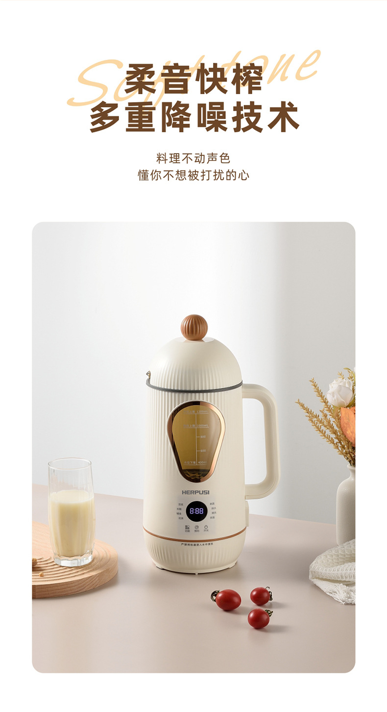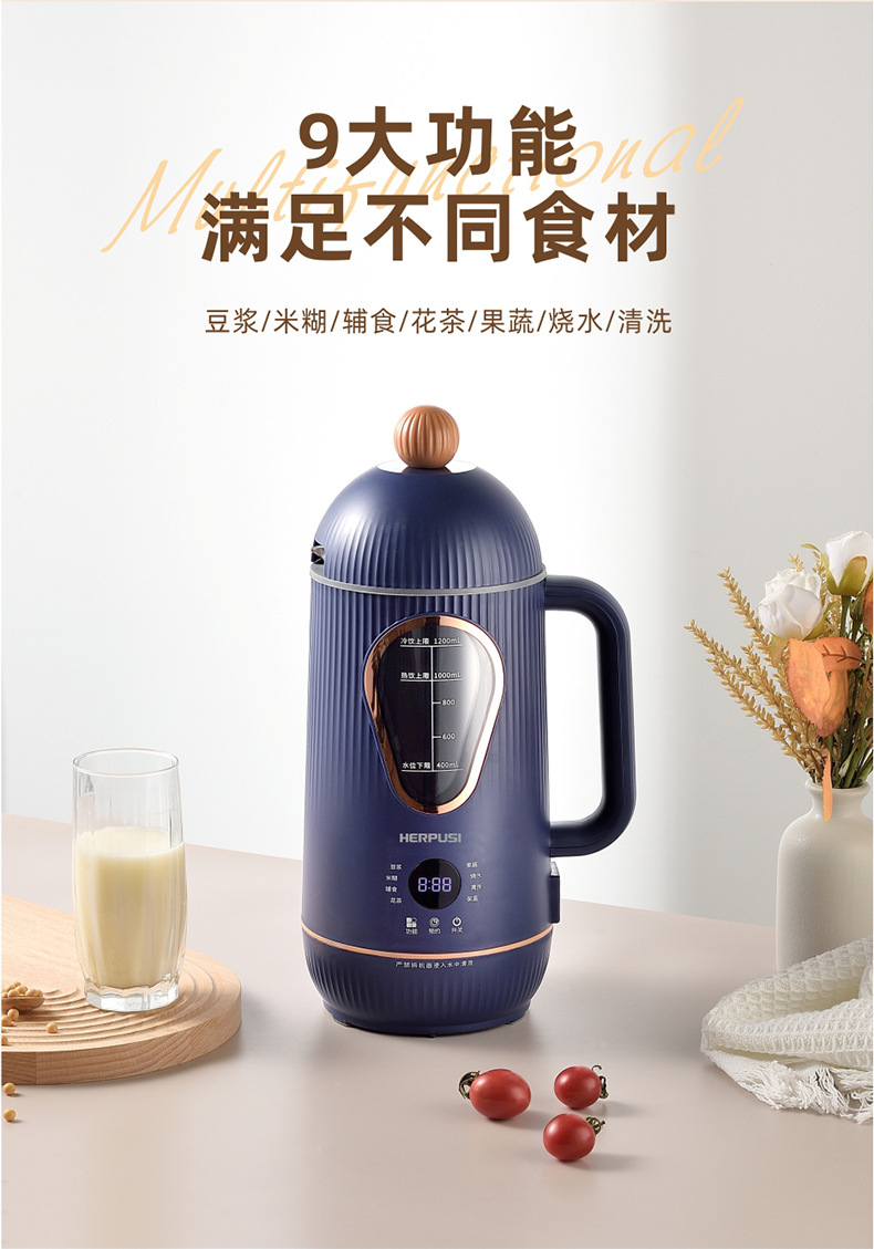 家用多功能轻音加热全自动小型料理机破壁机豆浆机1200ML3-4人